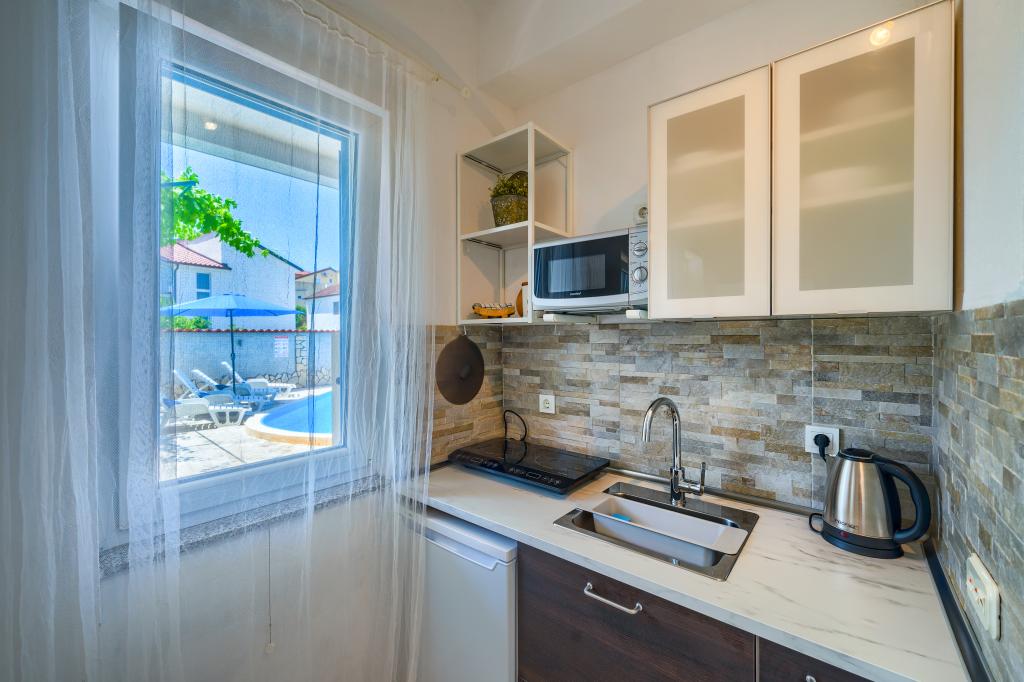 Apartemen Zelijki znaleźliśmy przez interent. Od początku był bardzo dobry kontakt i wyczerpujące odpowiedzi na nasze pytania. Podczas jazdu rozchorowało nam się dziecko, już w trakcie drogi mieliśmy namiary na klinikę pediatryczną, którą Zelijka nam wysłała. Po przyjeździe na miejsce i krótkiej rozmowie z właścicielką już wiedzieliśmy, że to był dobry wybór. Bardzo miła, uśmiechnięta i sympatyczna, bardzo dobrze rozmawia po angielsku, dzięki czemu spędzieliliśmy dużo czasu na ciekawych rozmowach Apartament czysty, zadbany, miał wszystko co potrzeba. Basen dziennie czyszczony, woda czysta, w ogrodzie winogrona i figi do jedzenia. Bardzo blisko plaży i do centrum. Cisza, spokój, idealne miejsce na odpoczynek. Mamy nadzieję, że uda nam się tam wrócić !! Dziękujemy za najlepsze wakacje Aneta, Oliwia i Dawid