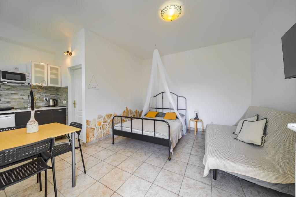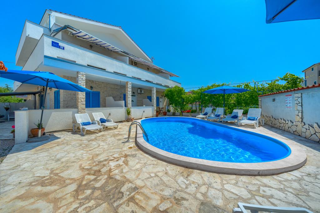 Nasza Villa Sentio Mare (Apartamenty Livaić Željko) oferuje nowo wyremontowane apartamenty typu studio oraz apartamenty z basenem. Znajdujemy się tuż przy głównej plaży Lolić, oddalonej o niecałe 100 metrów. Plaża jest kamienista, oznaczona Błękitną Flagą za czyste morze, idealna dla rodzin z dziećmi.