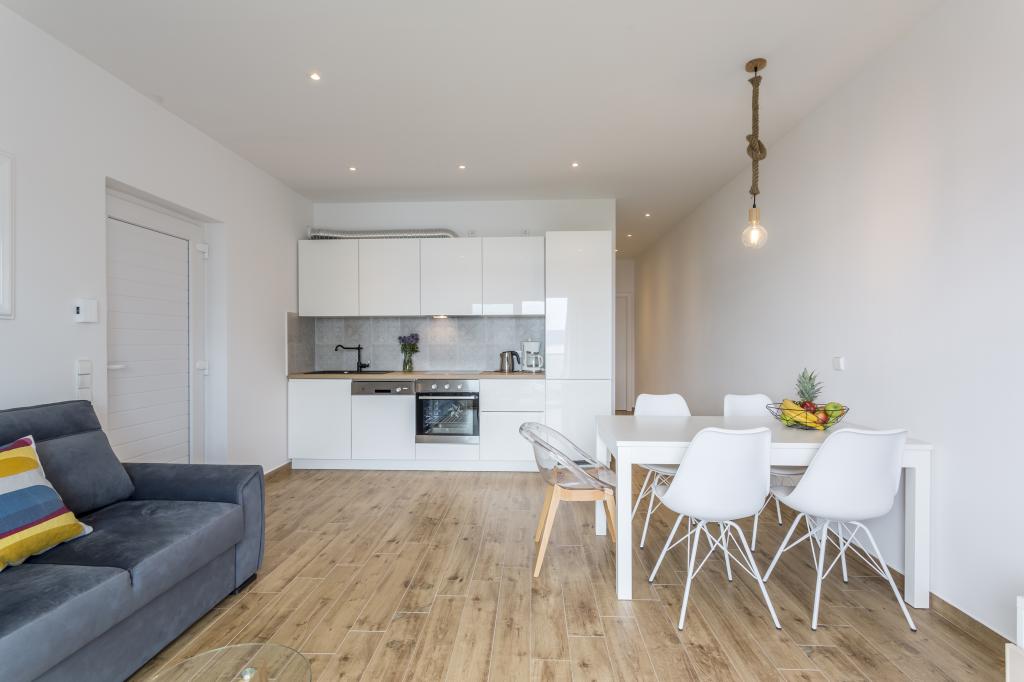 SeaHouse HAWK to nowoczesny i funkcjonalnie wyposażony apartament wakacyjny w Pisak, małym i urokliwym miasteczku na wybrzeżu Adriatyku! To miejsce jest idealnym wyborem dla par, rodzin lub przyjaciół, którzy chcą cieszyć się czystym morzem, piękną plażą i relaksującą atmosferą Dalmacji. Lokalizacja i okolica Apartament położony jest zaledwie około 120 m od plaży i zapewnia łatwy dostęp do morza oraz wszystkich udogodnień – restauracje, bary i sklepy znajdują się w odległości spaceru. Pisak to piękne miasteczko turystyczne znane z czystego morza, pięknych żwirowych plaż i relaksującej atmosfery idealnej na wakacje. O przestrzeni - Przestronny apartament z 2 sypialniami i pojemnością do 6 osób (2 łóżka podwójne + rozkładana sofa). - W pełni wyposażona kuchnia i salon dla komfortowego pobytu - Boczna toaleta z pralką - 2 klimatyzatory (bezpłatnie) i wentylatory sufitowe w pokojach - Duży taras o powierzchni 35 m² idealny na poranną kawę lub wieczorne spotkania towarzyskie - Bezpłatne prywatne miejsce parkingowe