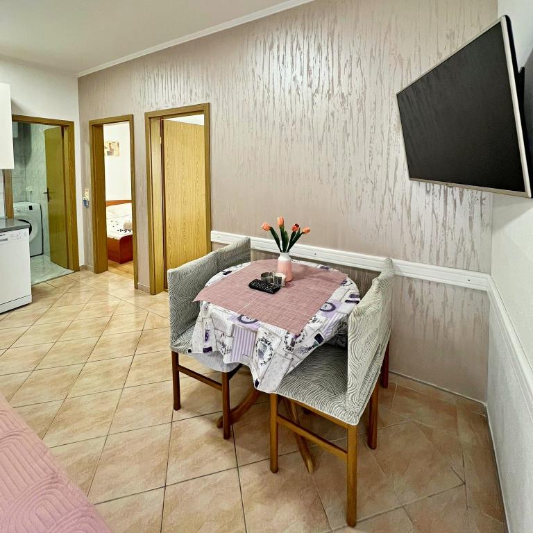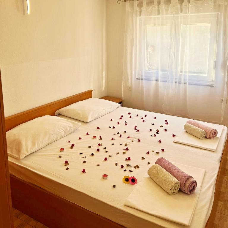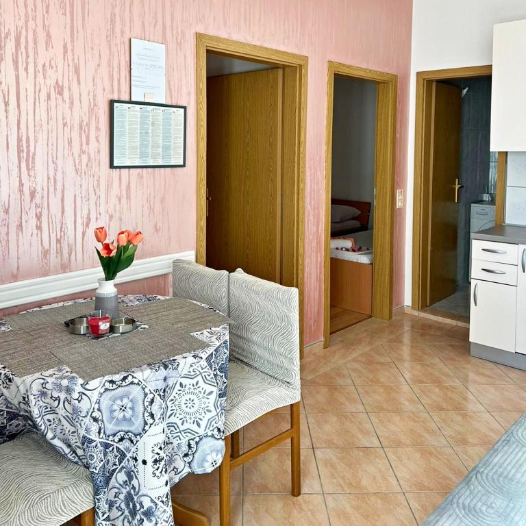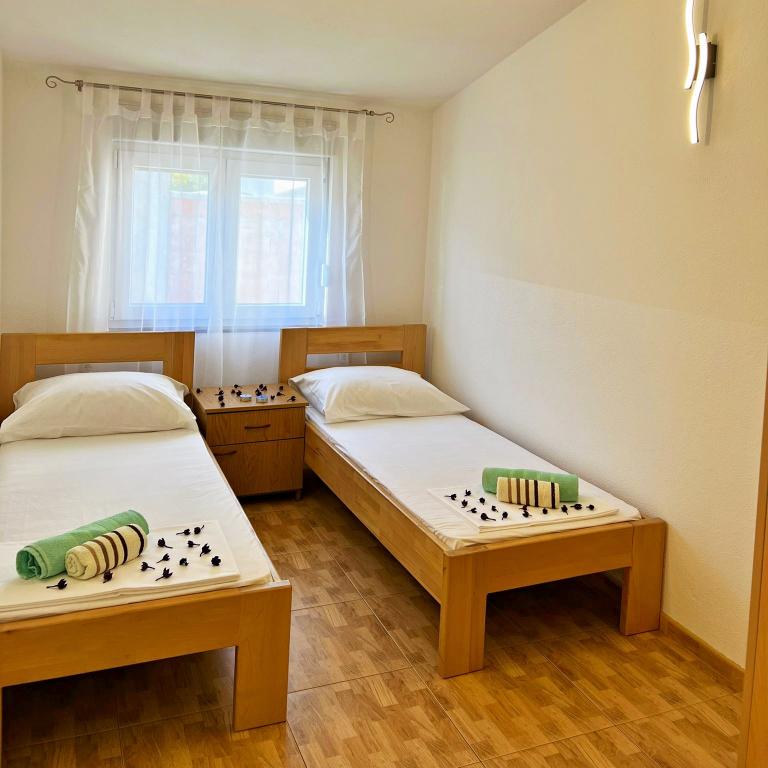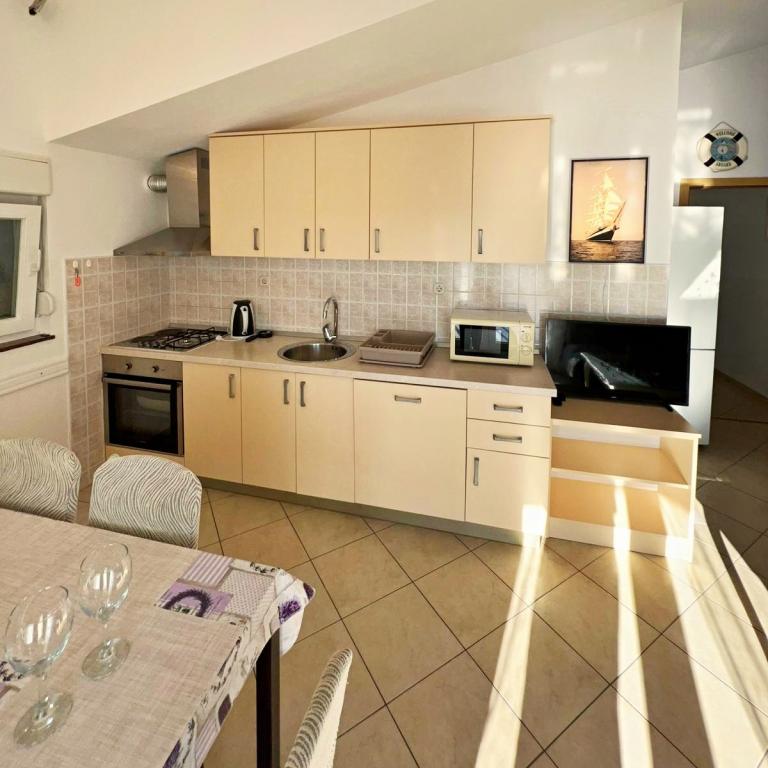 Oferujemy trzy apartamenty: >> APARTAMENT A6+2 na drugim piętrze – 3 sypialnie, salon z kuchnią i jadalnią, łazienka z WC, duży balkon z pięknym widokiem na morze! Klimatyzacja, pralka, zmywarka, kuchenka mikrofalowa, internet Wi-Fi. >> APARTAMENT A4+1 na pierwszym piętrze – 2 sypialnie, salon z kuchnią i jadalnią, łazienka z WC, duży balkon z pięknym widokiem na morze! Klimatyzacja, pralka, zmywarka, kuchenka mikrofalowa, internet Wi-Fi. >> APARTAMENT A4+1 na pierwszym piętrze – 2 sypialnie, salon z kuchnią i jadalnią, łazienka z WC, taras bez widoku na morze. Klimatyzacja, pralka, zmywarka, kuchenka mikrofalowa, internet Wi-Fi.
