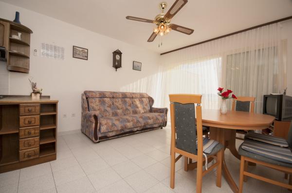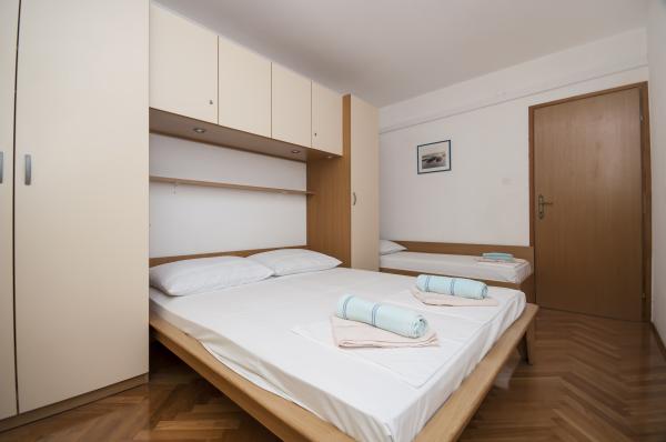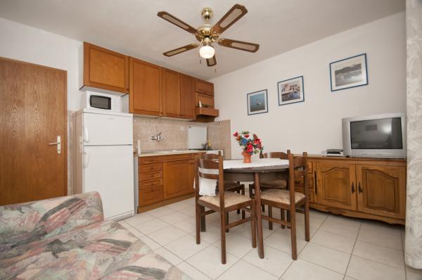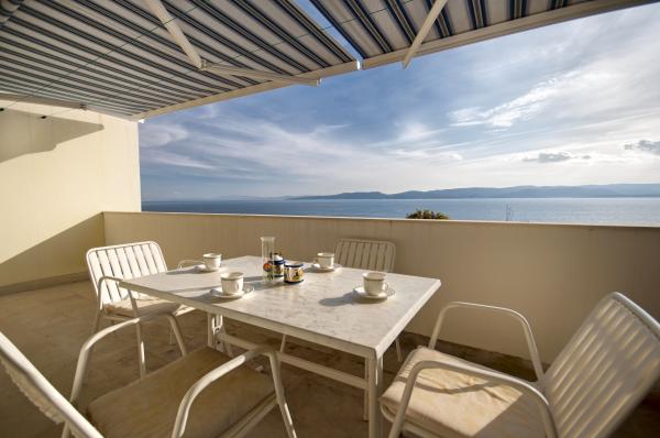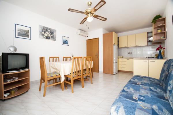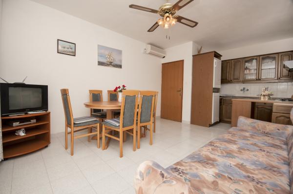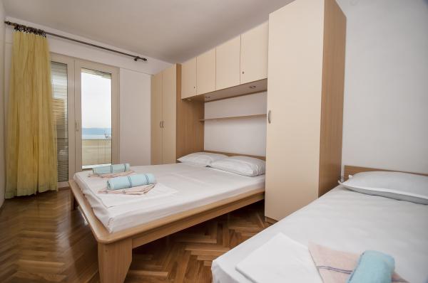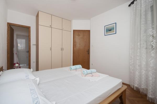 Nowoczesne apartamenty, znajduje niewielką kamienistą plażę, 50 metrów od morza z dużym balkonem z widokiem na morze, zorientowany na południe, oraz z jakością ochrony przeciwsłonecznej. Od centrum miasta, restauracji, kawiarni i duża plaża znajduje się 5 minut spacerem. Wszystkie apartamenty są klimatyzowane, w tym roku mamy także klimatyzację w każdym pokoju, w sumie 10 klimatyzatorów. Bezprzewodowy Internet w każdym apartamencie, kuchenka mikrofalowa, TV satelitarną również. Parking jest bezpłatny, istnieje wystarczająco dużo miejsca parkingowe dla wszystkich gości w całym domu.
