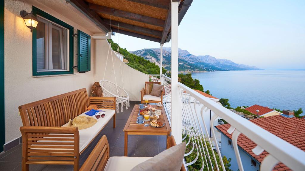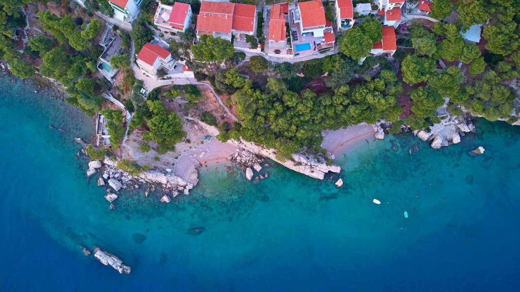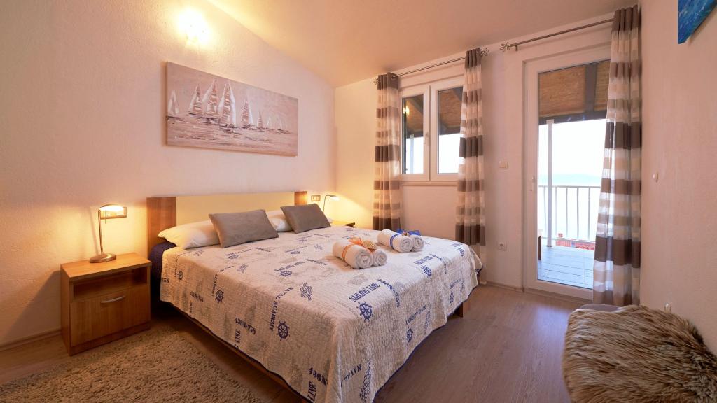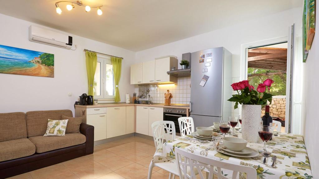Apartament ładny, czysty, nowo wyposażone pokoje i aneks kuchenny. Piękny widok z balkonu na morze i wyspę Brac. Położony przy końcu ślepej ulicy - ruch samochodów minimalny. Bardzo blisko zejście na dwie plaże położone w zatoczkach. Bardzo pomocna i miła właścicielka. Otoczenie ciche, spokojne, w miejscowości 1 sklep, 1 warzywniak, 2 knajpy i piekarnia.