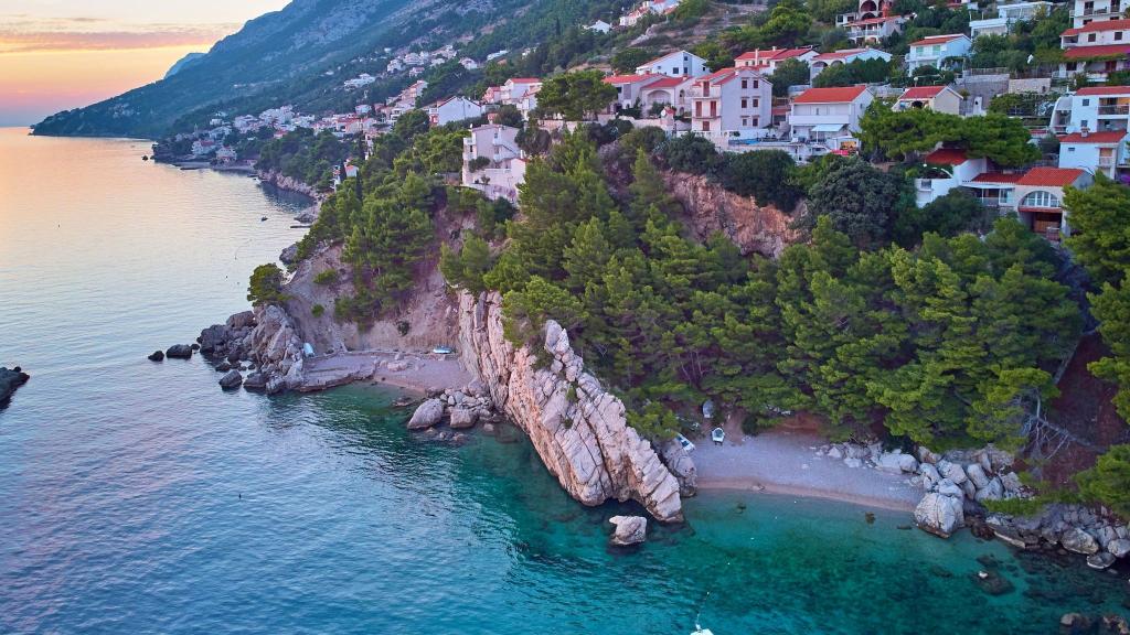 Dom Vinkovi Dvori znajduje się w małym i spokojnym miejscu Pisak na wybrzeżu Dalmacji, pomiędzy Omis i Makarską, zaledwie 40 km od Splitu. Vinkovi Dvori może pomieścić do 8 osób i składa się z dwóch przestronnych pięter, każdy z dużym tarasem na cały dzień pobytu, nowocześnie wyposażonej kuchni i salonu, łazienki z prysznicem z hydromasażem, dwóch wygodnych i przestronnych pokoi, klimatyzacji, sieci WIFI, telewizora LED i SAT antena, bezpieczna ... Mieszkanie na parterze ma przestronny i umeblowany taras z grillem, natomiast mieszkanie na pierwszym piętrze ma przestronny i umeblowany taras z pięknym widokiem na morze i wyspę Brac. Kilka pięknych plaż tuż pod domem Vinkovi Dvori, około 200 schodów, jest znanych ze swojego krystalicznie czystego i czystego morza, a leżenie na jego kamykach i kamykach daje każdemu z gości idealną okazję do całodziennego kąpieli, relaksu i cieszenia się słońcem i morzem przez długi czas urlop.