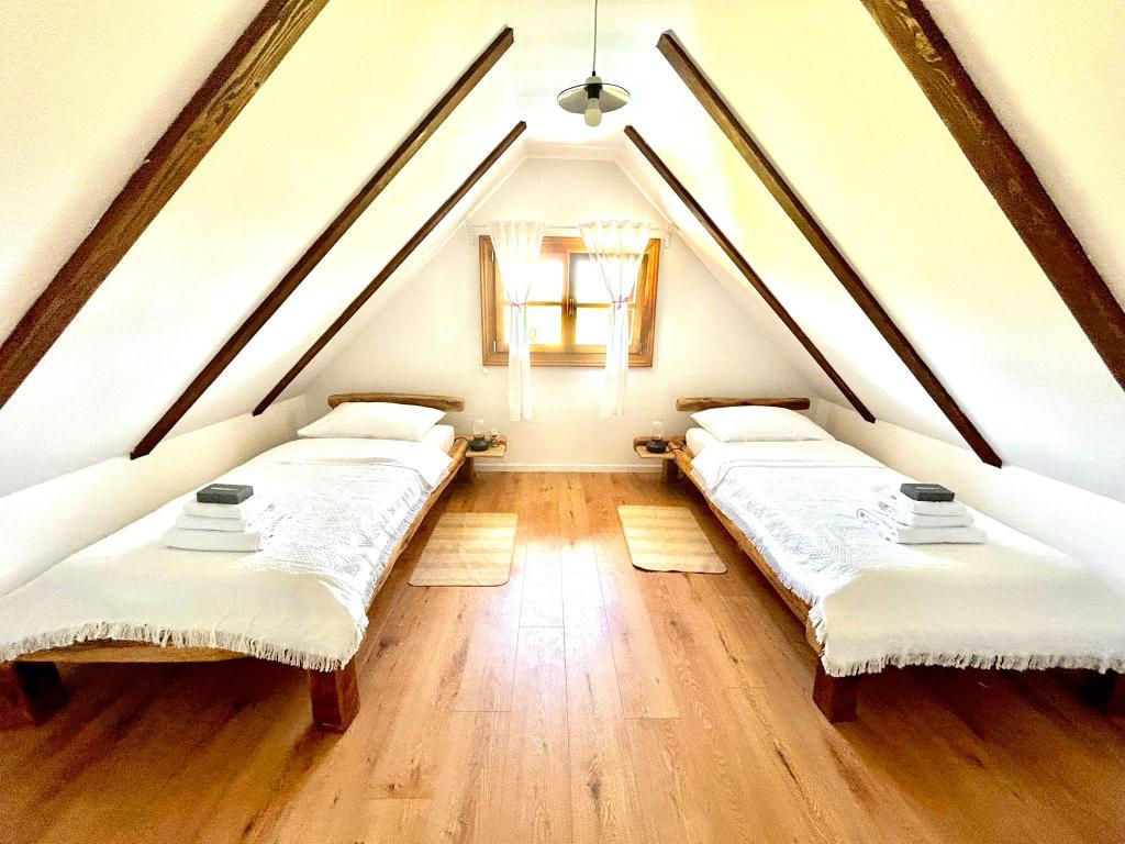 Dom Trzech Serc, położony w idyllicznej Vukomerice Gorice, to prawdziwa oaza spokoju i relaksu. Dzięki pojemności 5+2 jest idealny na rodzinne wakacje lub weekend z przyjaciółmi. Dom, sklasyfikowany w 4 gwiazdkach, oferuje wysoki standard komfortu i jakości, idealny dla każdego, kto chce uciec od zgiełku miasta. Otoczony zielenią, lasami i pastwiskami zapewnia pełen spokój i prywatność. W pobliżu znajdują się naturalne ścieżki idealne do spacerów, jazdy na rowerze lub słuchania dźwięków natury. Wnętrze domu łączy w sobie rustykalny urok i nowoczesny komfort, z przestronnym salonem, w pełni wyposażoną kuchnią i 3 wygodnymi sypialniami (1 łóżko; 2 łóżka dla 1 osoby; podwójne łóżko + dodatkowe łóżko dla 2 osób). Na świeżym powietrzu znajduje się miejsce do grillowania, basen i basen z hydromasażem, które zapewniają pełen relaks. Dostępny duży parking. Dom znajduje się 6 minut jazdy od Pisaroviny, 25 minut od Zagrzebia i Wielkiej Goricy. Park Narodowy Jezior Plitwickich oddalony jest o 1,45 min, a atrakcje morskie w Kvarnerze – o 2,50 km