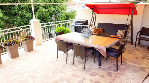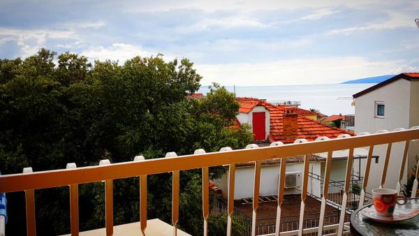 Całkowicie odnowiony i nowocześnie wyposażony apartament, który znajduje się na pierwszym piętrze. Klimatyzowany apartament posiada dwie sypialnie z tarasem i widokiem na morze, kuchnia i pokój dzienny. Odległość od plaży wynosi około 100 metrów i 200 metrów od centrum miasta. Goście mają dostęp do bezprzewodowego internetu i telewizji. Jest on również dostępny i korzystać z tarasu z grillem. Goście będą mogli parking, a cena zawiera podatek pobytowy.