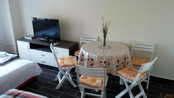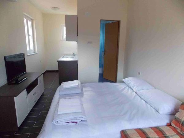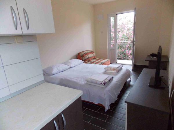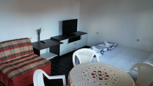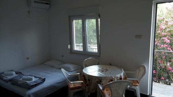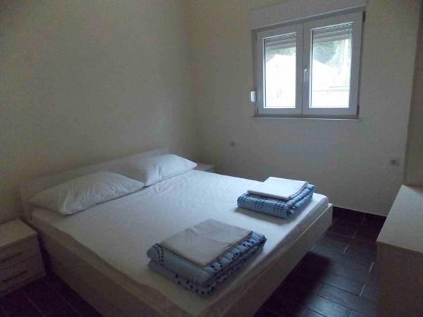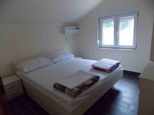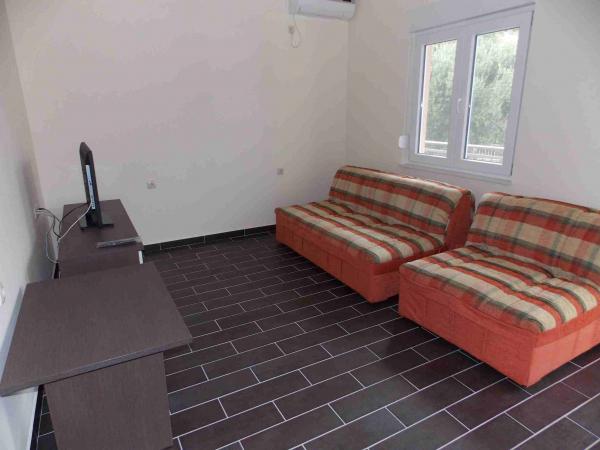 Apartamenty położone są w centrum danych. Znajdują się one 100 metrów od morza i pięknych plaż. Sklep, poczta, boisko sportowe, kościół, przystanek autobusowy i wymiany w promieniu 40 m od apartamentu. Obiekt składa się z czterech apartamentów, dwa oddzielne apartamenty dla dwóch osób z dostawką, jeden apartament dla dwóch osób z trzema dostawkami i duży apartament dla czterech osób oraz trzech dodatkowych łóżek. Apartamenty są nowe i wyposażone w klimatyzację, TV, łazienką i kuchnią. Apartamenty mają zastosowanie dwa tarasy i dziedziniec z grilla w cieniu. Gości parking jest świadczona, a cena zawiera podatek turystyczny. Pościel i ręczniki są wliczone w cenę i zmieniane są co siedem dni.