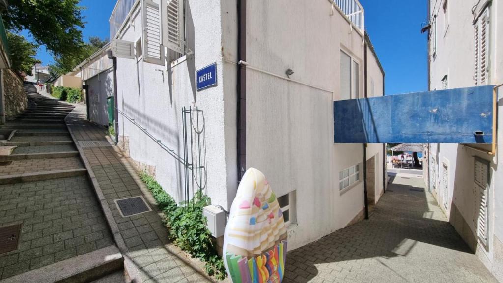 Obiekt położony jest bardzo blisko plaży. Krótki, maksymalnie 2-minutowy spacer. Cicha okolica. Wspaniały widok na morze. Gospodarze to bardzo serdeczni i pomocni ludzie. Obiekt oferuje doskonale wyposażone, czyste pokoje, łazienki oraz kuchnię z aneksem kuchennym. Idealny dla rodzin wielodzietnych. Chętnie tu wrócimy.