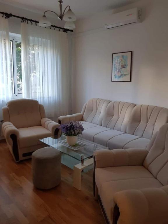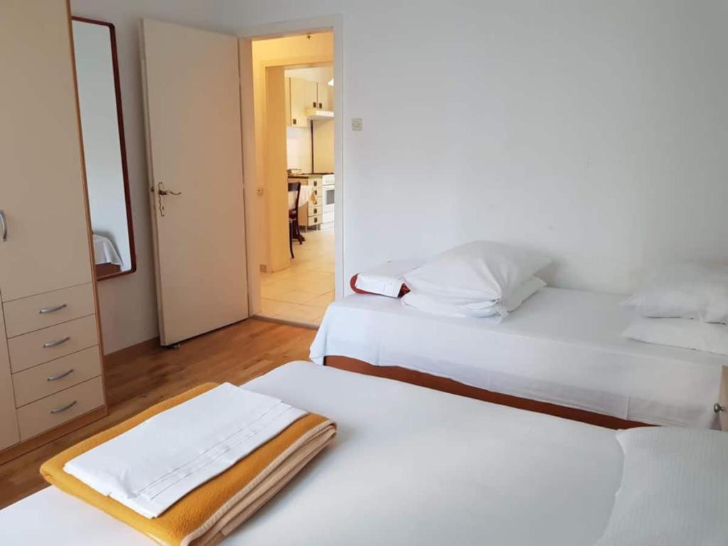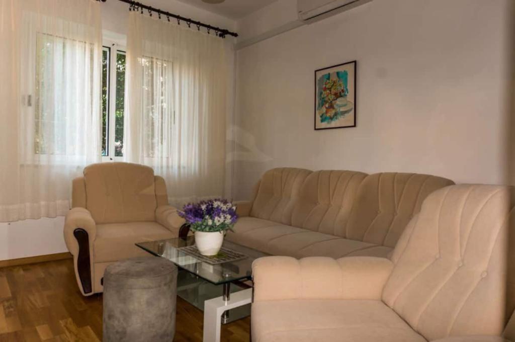 Apartament Strada znajduje się na parterze kamienicy. To tylko minuta od morza i najbliższej plaży. W pobliżu znajduje się sklep, bankomaty i inne przydatne udogodnienia. Mieszkanie znajduje się w cichej i bezpiecznej okolicy. Mieszkanie składa się z 2 sypialni, kuchni, toalety i salonu. W pierwszym pokoju znajduje się duże podwójne łóżko, łóżko dla jednej osoby, szafa, klimatyzacja i inne potrzebne rzeczy. W drugim pokoju duże dwuosobowe łóżko, szafa i stolik z lustrem, klimatyzacja i inne potrzebne rzeczy. Kuchnia wyposażona w sprzęt AGD i naczynia, a także zmywarkę. W toalecie znajduje się kabina prysznicowa, toaleta, pralka, umywalka, lustro. Salon jest przestronny, składa się z 2 foteli i rozkładanej sofy, która może służyć również jako łóżko, pokój jest klimatyzowany i wyposażony w telewizor.