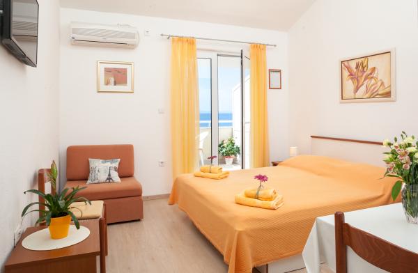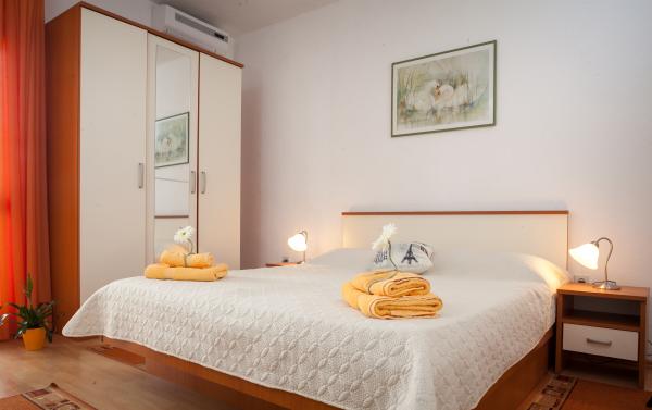Apartamenty Ane znajdują się w Podgora, małej wiosce rybackiej w środkowej części Riwiery Makarskiej. Obiekt posiada łącznie pięć apartamentów z widokiem na morze i wyspy w pobliżu Brac i Hvar i pięknych, piaszczystych plaż to tylko kilkaset metrów. Mieszkania są w pełni wyposażone, a izolacja od głównej drogi gwarantuje ciszę i spokój. Apartamenty Ana obejmują pięć apartamentów. Na pierwszym piętrze znajdują się dwa apartamenty: jeden dla 5-7 osób i jeden dla 2 osób. Na drugim piętrze znajdują się trzy apartamenty: jeden dla 3-5 osób, po jednym dla 2-3 osób i jeden dla 3 osób. W pobliżu domu znajdują się miejsca parkingowe. Witamy!