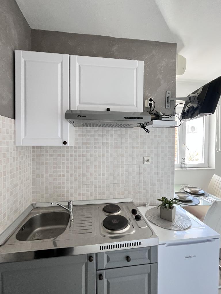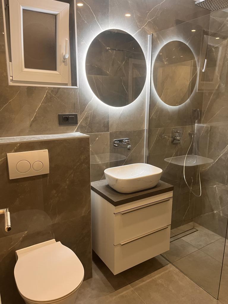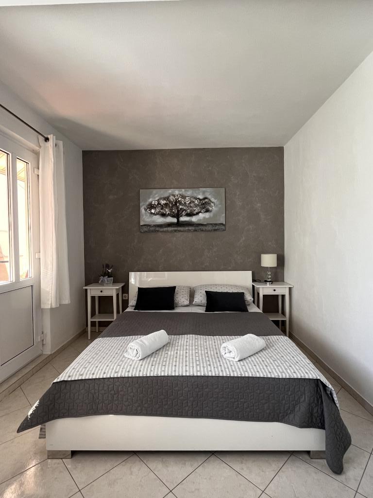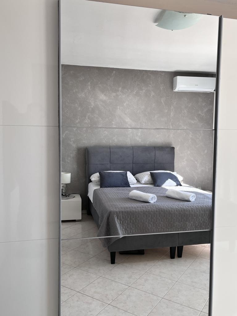 Mieszkanie A4+1 jest duże i wygodne. To dwie zamykane sypialnie z prywatnymi łazienkami i dodatkowa trzecia łazienka dostępna z korytarza z pralką. W kuchni zmywarka i dodatkowa lodówka na napoje. Klimatyzacja w każdym pokoju. Czysto. Bardzo miła właścicielka