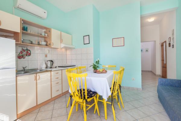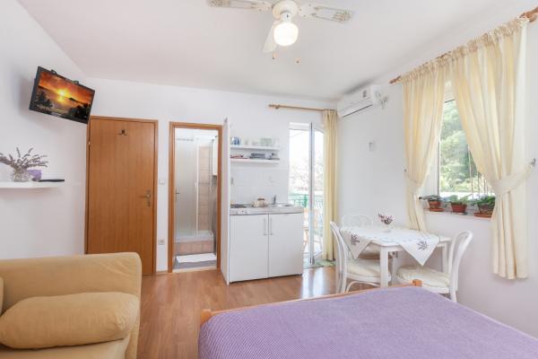 Nasze apartamenty znajdują się przy wejściu Podgora, w nie tak hałaśliwe i nadaje się na rodzinne wakacje. Nowe mieszkanie w budynku z ostatnich budowy, wyposażone w nowoczesne meble, w celu zapewnienia bardziej komfortowy pobyt dla naszych gości. Elewacja z kamienia i naturalny odcień na podwórku daje typową atmosferę Dalmacji. Obiekt położony jest w odległości krótkiego spaceru od morza, plaży, centrum miasta i sklepów. W bezpośrednim sąsiedztwie lasów i gajów oliwnych gwarantuje świeże i czyste powietrze oraz szlaki turystyczne mogą podziwiać piękny widok na morze, wyspy i góry.