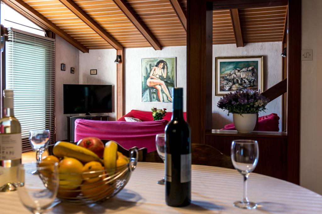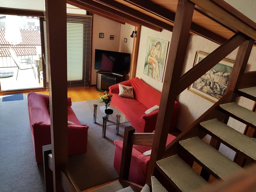Apartamenty znajdują się w domu rodzinnym w samym centrum Podgory, 50 metrów od głównej plaży. W promieniu 100 metrów znajdują się restauracje, kawiarnie, sklepy, poczta, apteka, lekarz, plac zabaw dla dzieci... Apartamenty posiadają własne miejsce parkingowe, które jest wliczone w cenę. W cenę wliczone są wszystkie podatki. W apartamentach znajduje się bezpłatny, nieograniczony dostęp do Internetu Wi-Fi oraz telewizja satelitarna. Apartamenty są klimatyzowane (wszystkie pomieszczenia). Apartament 6+2 DeLux to luksusowo urządzony dwupiętrowy apartament. Na pierwszym piętrze znajduje się duży salon, kuchnia, jadalnia, sypialnia, łazienka, toaleta, duży taras z miejscami do siedzenia i widokiem na morze. Na drugim piętrze, na które prowadzą wewnętrzne schody, znajdują się dwie duże sypialnie z prywatnymi łazienkami. Apartament 4+1 Classic to duży apartament z dwiema sypialniami, łazienką, salonem, kuchnią z jadalnią i dużym balkonem. Jesteśmy do Państwa dyspozycji i chętnie udzielimy wszelkich informacji drogą mailową lub telefoniczną.