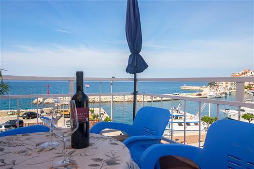 Gorąco polecamy apartament wszystkim! Absolutnie świetne położenie naprzeciwko portu iw centrum, krótki spacer do restauracji, plaża z jednej strony, z drugiej bardzo blisko. Niesamowity widok z tarasu - morze w zasięgu ręki ..... Mieszkanie nowoczesne, bardzo dobrze wyposażone, w kuchni wszystko co potrzebne, większa lodówka z osobną zamrażarką, mniejsza łazienka ale w pełni adekwatna, funkcjonalna klimatyzacja w cenie, 2 balkony. Starannie posprzątane - podczas pobytu zmieniane są ręczniki i pościel. Wszystko jest idealne jednym słowem! Właściciele bardzo mili i gościnni.