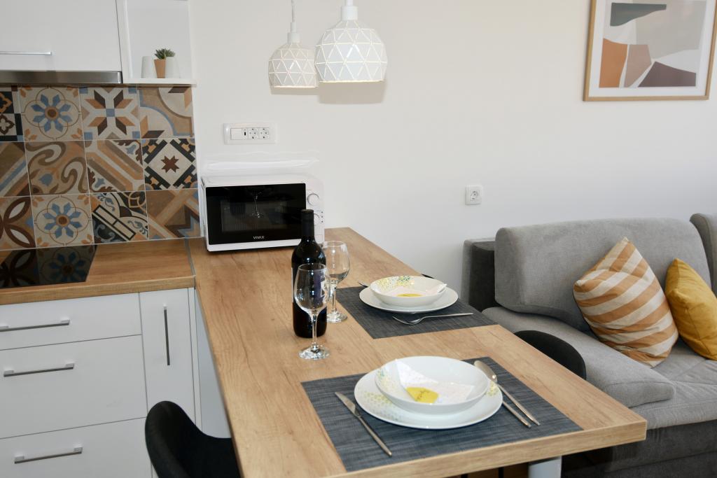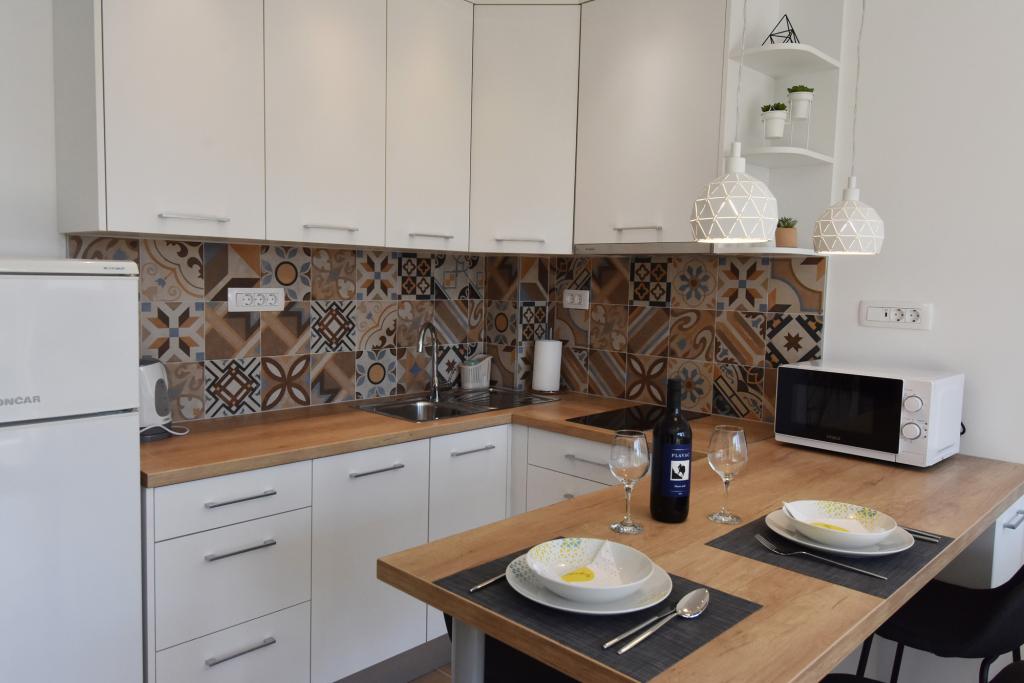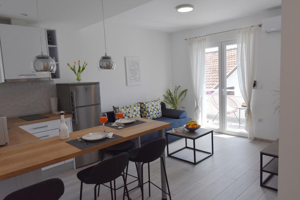 Villa VANJA znajduje się w spokojnej części miejscowości Podgora, 100 m od morza, restauracji i kawiarni. Villa VANJA posiada 3 apartamenty i 1/2 pokoju. SŁONECZNY TARAS znajduje się na drugim piętrze, posiada dwie sypialnie z podwójnymi łóżkami i prywatnymi łazienkami, pralkę, kuchnię i salon ze zmywarką, kuchenką mikrofalową, ekspresem do kawy lub herbaty, KLIMATYZACJA, TV SAT, internet, sejf, duży taras - morze widok, parking w pobliżu. HARMONY znajduje się na pierwszym piętrze i posiada pokój z łóżkiem małżeńskim i balkonem z widokiem na morze, nowoczesną łazienkę z pralką, kuchnię i salon z rozkładaną sofą dla 2 osób, zmywarkę, mikrofalówkę, ekspres do kawy lub herbaty, sejf, KLIMATYZACJA , TV SAT, internet, balkon z widokiem na morze, parking w pobliżu. SECRET GARDEN znajduje się na parterze i składa się z pokoju dwuosobowego, łazienki, kuchni z salonem z kanapą dla 1-2 osób, zmywarki, kuchenki mikrofalowej, BEZPIECZEŃSTWA, KLIMATYZACJI, TV SAT, internetu, ogrodu z grillem, parkingu w pobliżu. POKÓJ DWUOSOBOWY znajduje się na pierwszym piętrze.