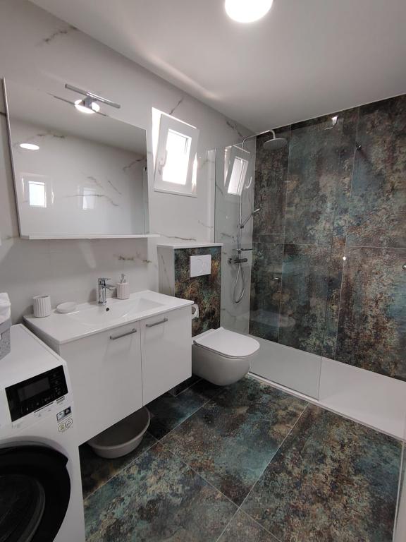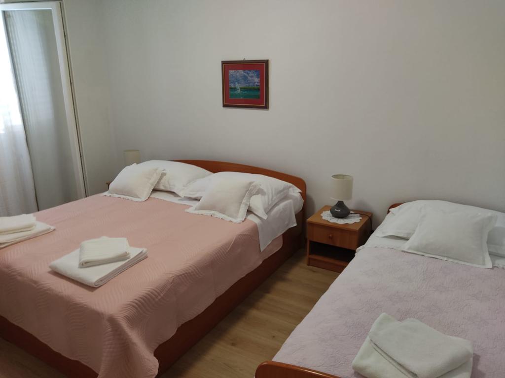 Jak do tej pory najlepsze zakwaterowanie w Chorwacji. (a jest to nasz 10 razy) Apartament 8+1 - bardzo przestronny, czysty, klimatyzowany (3xAC), dostępne 2 aneksy kuchenne, 2 lodówki (co przy takiej liczbie osób jest bardzo przydatne ) kuchnia wyposażona we wszystko co jest potrzebne, 2 łazienki (prysznic, wanna) i co najważniejsze fantastyczne taras z przepięknym widokiem na morze, góry, miasto. Chociaż mapy google nie pokazują drogi na plażę to nie martw się :) jest prawda ... malownicza ścieżka pomiędzy oliwnymi drzewkami i okolicznymi domkami (zejście zajmowało nam 7 minut). Pokoje bardzo przestronne z dużymi łóżkami i szafkami na rzeczy, dwa wychodzą na największy taras, kolejne dwa na balkony w kierunku gór. Najważniejsza rzecz - WSPANIALI właściciele, bardzo mili i pomocni. Już dawno nie spotkaliśmy tak gościnnych i pomocnych ludzi, reagujących na każdą sugestię, prośbę, zapytanie. Polecam W 100%