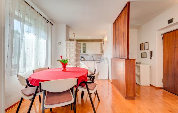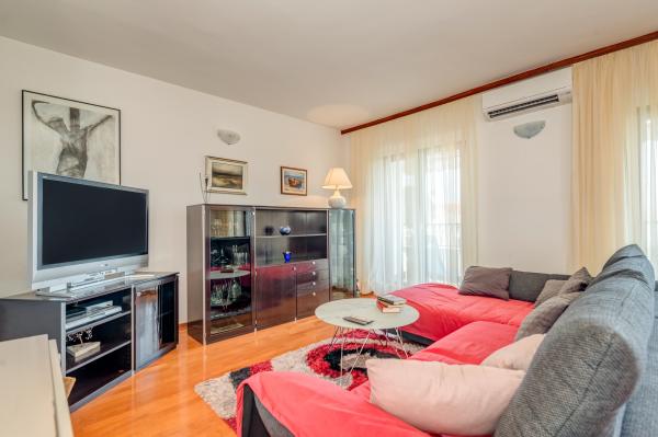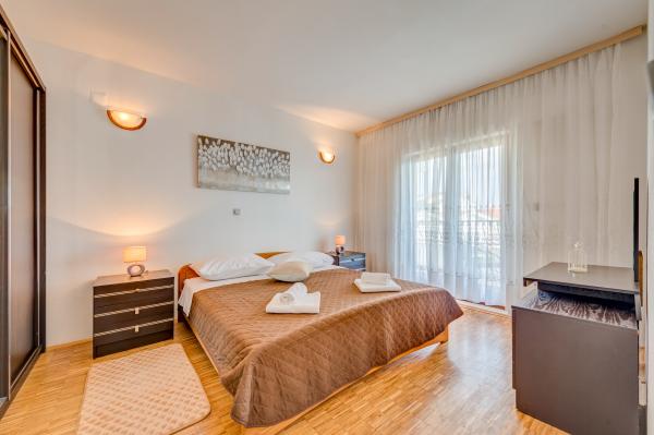 Ten piękny i komfortowy apartament położony jest w spokojnej okolicy w miejscowości Podstrana, zaledwie 400 metrów od plaży i 12 km od Splitu. W pobliżu znajduje się duża liczba restauracji oraz sklep i dworzec autobusowy z bezpośrednim połączeniem do Splitu. Ten dwupiętrowy apartament przeznaczony jest dla sześciu osób, posiada trzy sypialnie (każda wyposażona w podwójne łóżko), salon z telewizorem, w pełni wyposażoną kuchnię z jadalnią i dwie łazienki z prysznicem. Pokój oferuje klimatyzację i bezpłatny bezprzewodowy dostę p do Internetu, a także prywatny parking przed budynkiem.