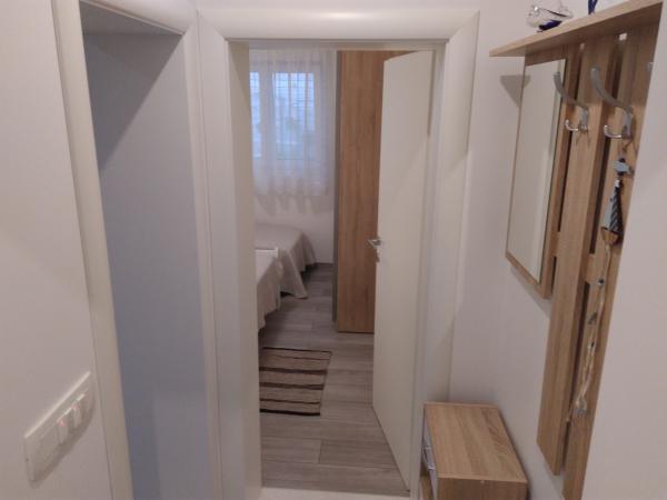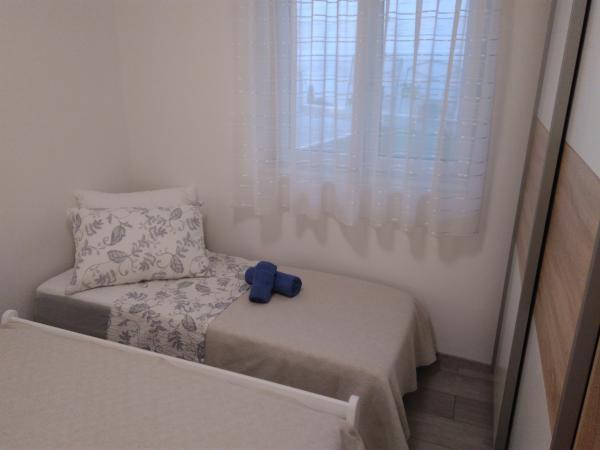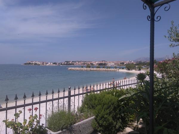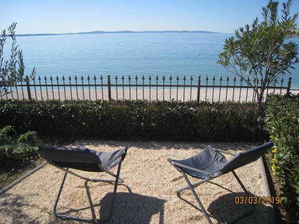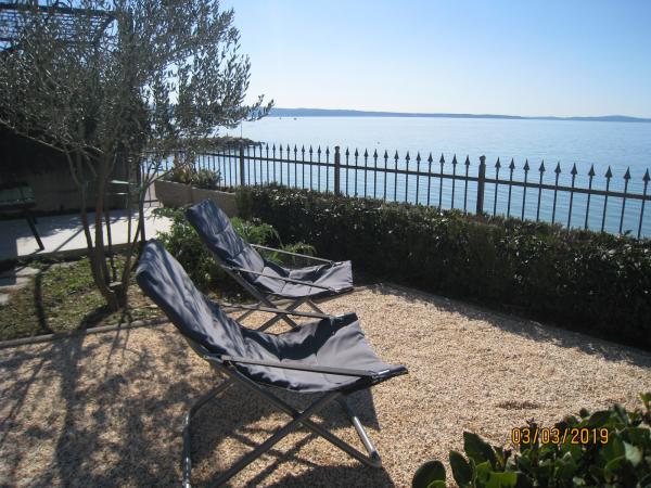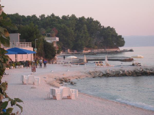 Nasz apartament znajduje się w pierwszym rzędzie do morza, w Strozanj, małej wiosce w turystycznej miejscowości Podstrana. Dodatkowe łóżko nie może być zakwaterowane w apartamencie, ale jeśli wolisz, inne dziecko może spać do 5 lat na dużym łóżku. Przystanek autobusowy jest 5 min. chodzić od mieszkania, a dla twojego samochodu mamy prywatny parking. Apartament znajduje się na parterze domu rodzinnego, bez widoku na morze, ale masz kilka kroków do morza, a żwirowa plaża prowadzi przez nasz ogród. W naszym ogrodzie opalającym się można odpocząć przy porannej kawie lub wieczornym zachodzie słońca z widokiem na morze. Do Państwa dyspozycji jest parasol słoneczny i leżaki, na których można opalać się i odpoczywać w naszym ogrodzie lub zabrać je na plażę bliżej morza. Zachęcamy do spaceru po porcie łodzi na nowo wybudowanej plaży z jednej strony lub do kompleksu słynnego hotelu Lions po drugiej stronie morza. Odwiedź miasto Split i 1700-letni pałac Dioklecjana (położony zaledwie 8 km od apartamentów) i ciesz się latem w mieście!