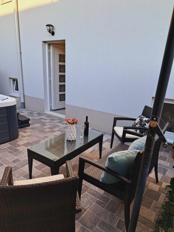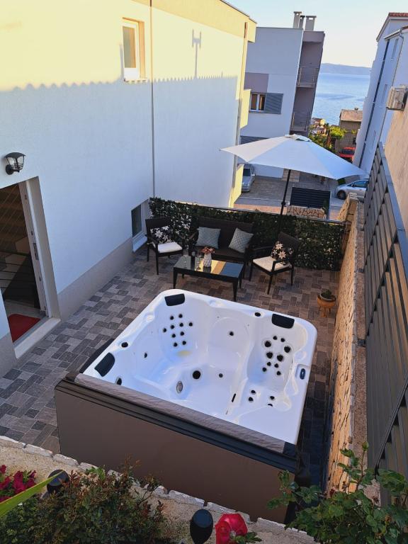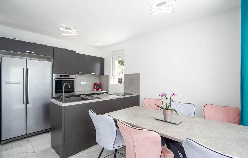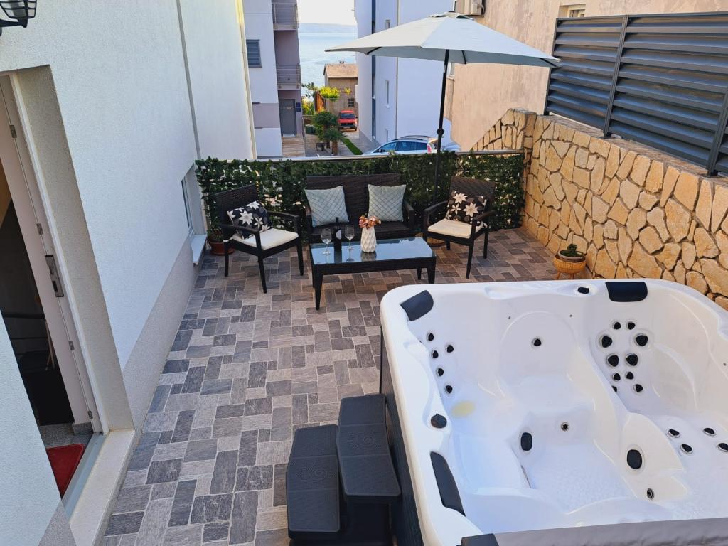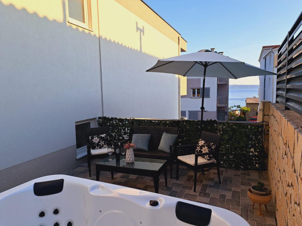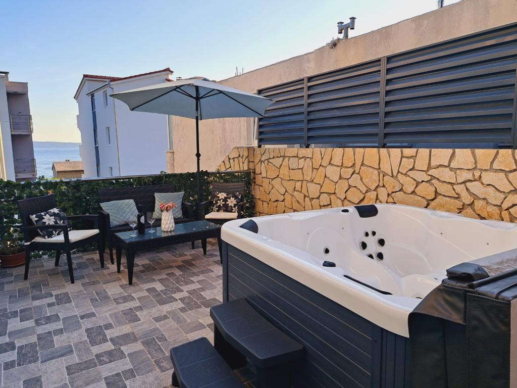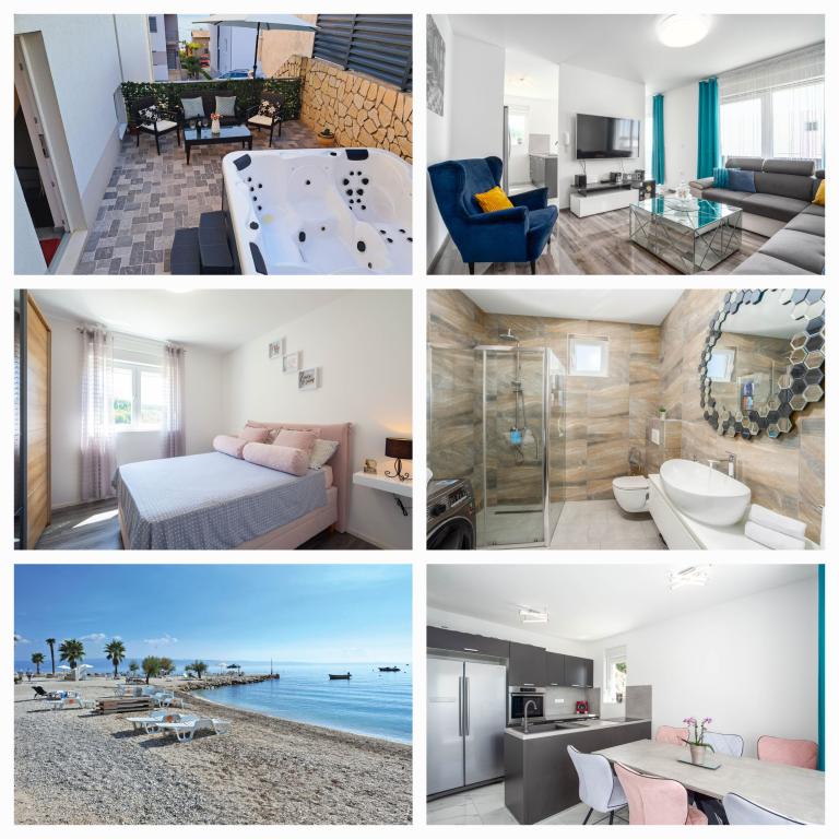 Nowy w pełni wyposażony apartament położony w spokojnej okolicy z pięknym widokiem na morze.Idealny na spokojny wypoczynek z rodziną.Apartament posiada wszystko czego potrzeba grill,dwa tarasy z których jeden posiada jacuzzi, mogą być używane tylko przez gości apartamentu.oraz dwa miejsca parkingowe.Piękna żwirowa plaża oddalona jest o 10 minut spacerem.Jako gospodarze jesteśmy do Państwa dyspozycji 24 godziny na dobę.Mamy nadzieję, że wybiorą Państwo nasz apartament Twoje wakacje i czekamy na Twój przyjazd.