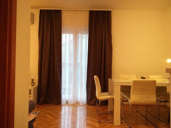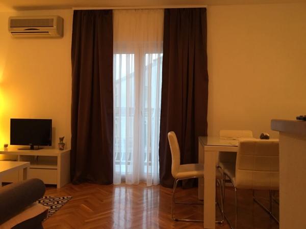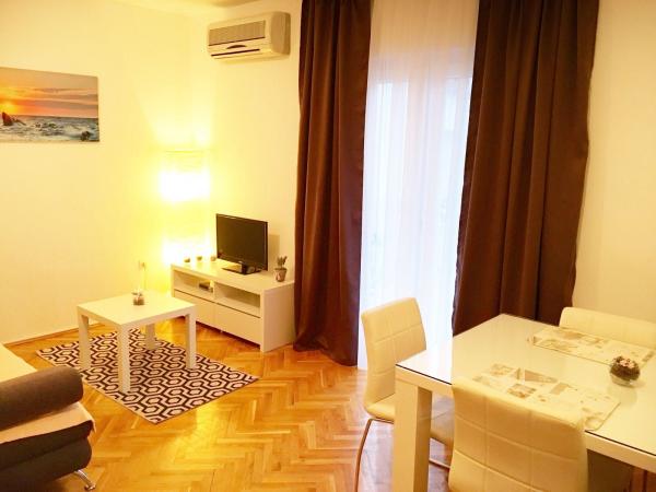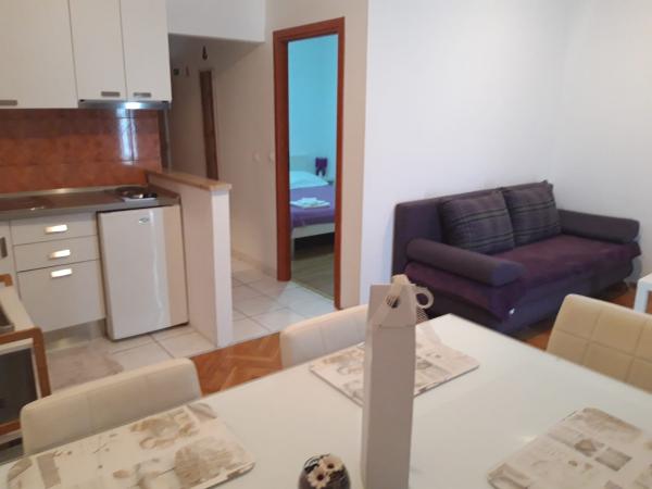 Niedawno odnowiony i komfortowe mieszkanie w spokojnej okolicy, znajduje się pięć minut spacerem od morza, pięknych plaż i nadmorskiej promenady. W pobliżu znajdują się sklepy, restauracje, pizzerie, piekarnie, place zabaw, pole golfowe ... Zaledwie kilka minut spacerem od apartamentu jest to luksusowy hotel, który oferuje możliwość korzystania z obiektów sportowych takich jak tenis, siatkówka plażowa, koszykówka i korzystania z basenu i wellness. Apartament znajduje się dziesięć minut toczenia od centrum Splitu, którego centrum jest pałac starego Dioklecjana z 4 wieku (pod ochroną UNESCO), który jest unikalny w skali światowej. Zaledwie dwadzieścia minut jazdy od apartamentu można podziwiać spektakularny rozkoszy rafting na rzece Cetina, w pobliżu starego miasta Omis piratów. Mieszkanie składa się z: kuchni, jadalni, salonu z balkonem z widokiem na morze, sypialni, przedpokoju oraz łazienki. Apartament posiada własny parking.