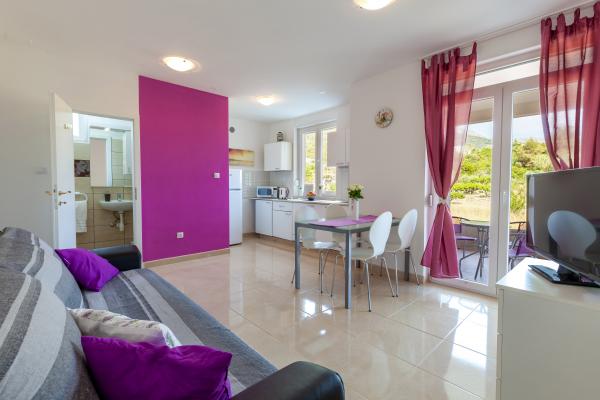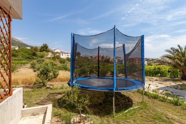 W pełni wyposażone nowoczesne mieszkanie w pobliżu Splitu! Apartamenty są klimatyzowane, z tarasem i grillem w ogrodzie. Mamy też dużą trampolina dla dzieci (o średnicy 3, 5 metrów). W osobnym pokoju znajduje się łóżko podwójne, natomiast w salonie może pomieścić dwie osoby dorosłe na wygodną kanapą.