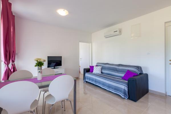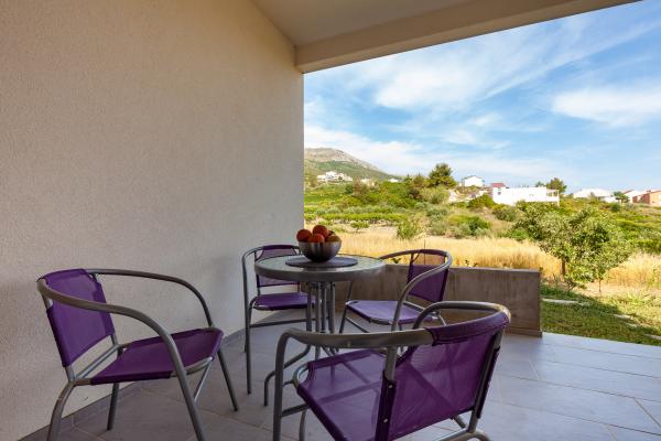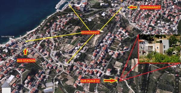 Apartamenty znajdują się na parterze z wykorzystaniem ogrodzie. Miejsce parkingowe dla samochodów. Znajdują się one w odległości 400 metrów od słynnych hoteli i pięknych plaż Le Meridien Lav - Split. Od centrum Splitu, jesteś tylko 8 km. Lotnisko znajduje się 25 km od hotelu.