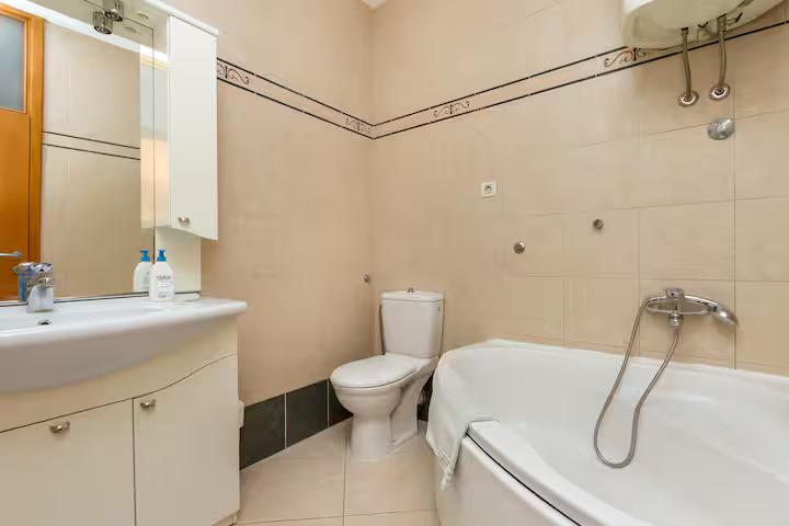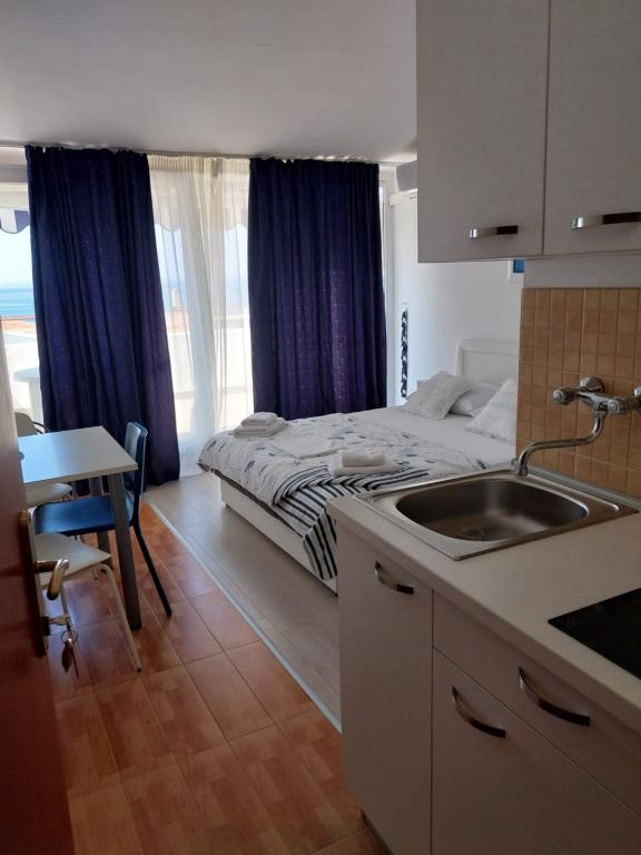 Apartamenty położone w bezpośrednim sąsiedztwie plaży, w pełni i nowocześnie wyposażone. Gość ma bezpośredni dostęp do morza i w pełni wyposażonej plaży, a także bezpłatne korzystanie z leżaków i parasoli. Nasze usługi konserwacji apartamentów są na wysokim poziomie.