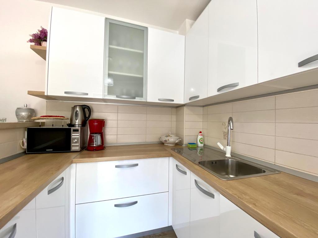 Całkowicie nowe apartamenty położone 10 m od morza w cichym otoczeniu. W pobliżu rynek, kawiarnia, piekarnia, apteka. Apartamenty znajdują się 12 km od Splitu, 13 km od Omis. Apartamenty posiadają duże tarasy.