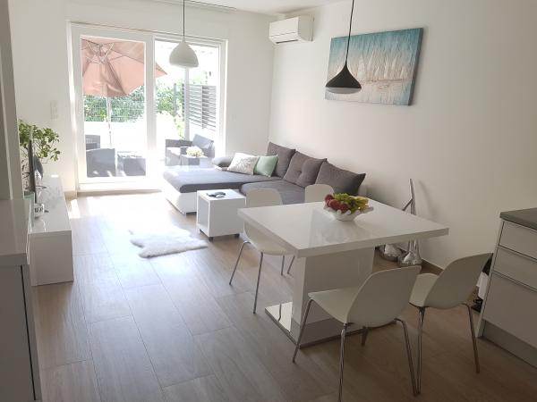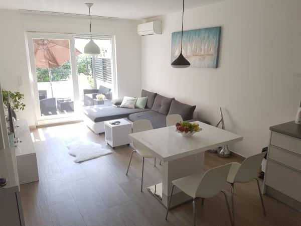 Apartamenty Marjan B, C, D to nowo wyremontowane apartamenty, położone w Podstrana (6 km od Splitu). Apartamenty są urządzone zgodnie z wysokimi standardami (4) i obejmują: bezpłatne miejsce parkingowe, szybkie łącze internetowe, balkon, grill, klimatyzację ... W pobliżu apartamentów znajdują się dwie żwirowe / piaszczyste plaże (6-10 minut spacerem) i wiele sportów zajęcia rekreacyjne (pole golfowe, kort tenisowy, sala gimnastyczna). Wszystkie apartamenty są dwupokojowe i mogą pomieścić do 5 osób na apartament.