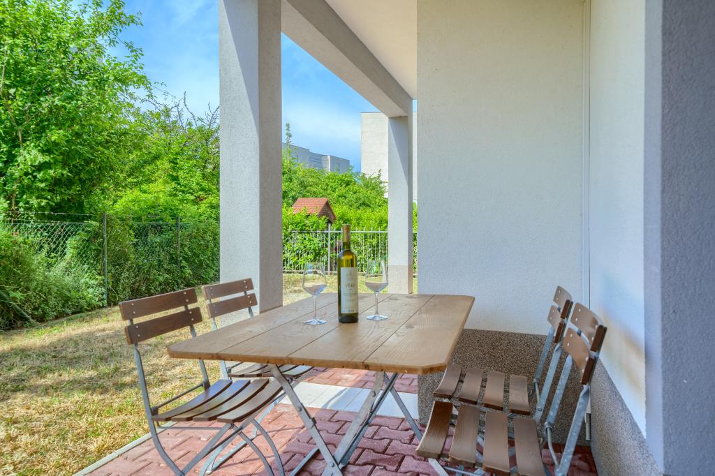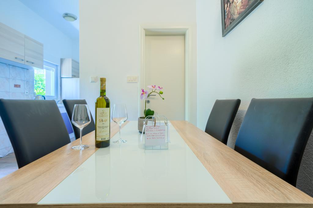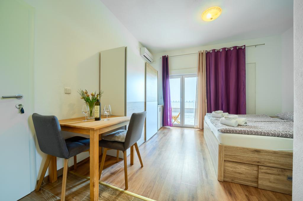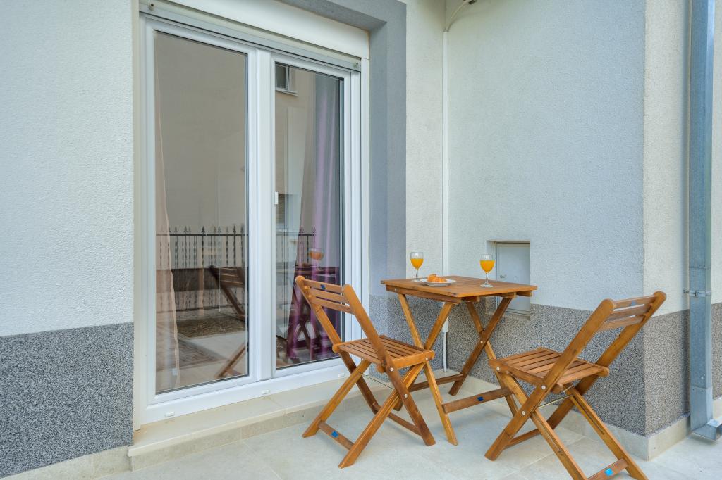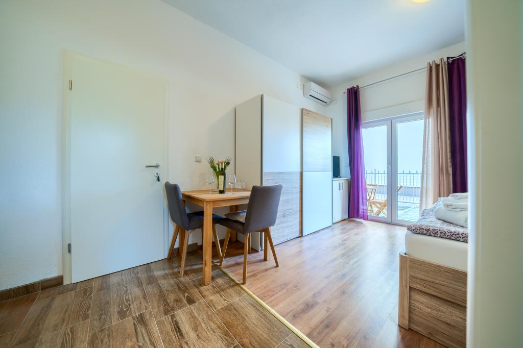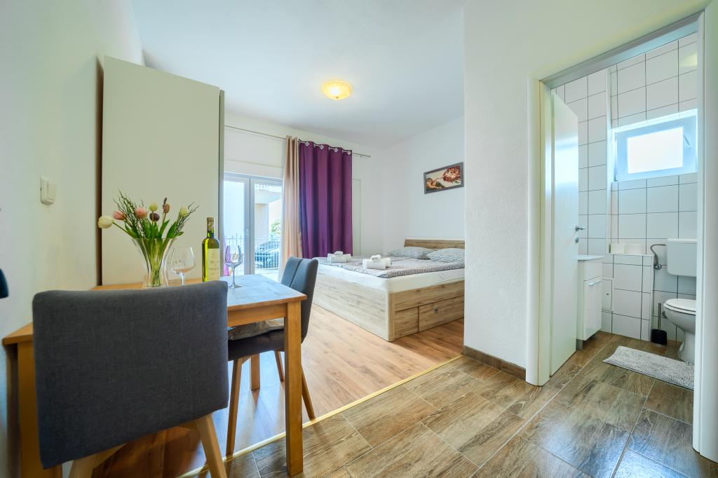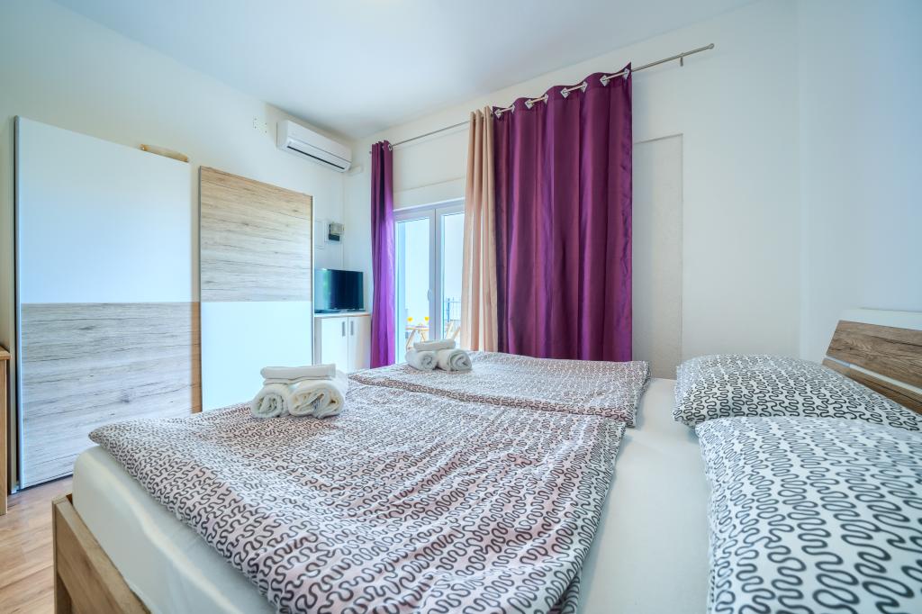 Nowe i nowocześnie wyposażone apartamenty w spokojnej okolicy, położone 200m od morza. Obiekt położony jest 5 minut spacerem od 3 kamienistych plaż, kawiarni, sklepów, restauracji, drogerii, gabinetów lekarskich i aptek. Wszystkie jednostki wyposażone są w klimatyzację, TV, jadalnię, łazienkę i taras. Nowy basen o wymiarach 8x4m jest dostępny wyłącznie dla gości apartamentów.
