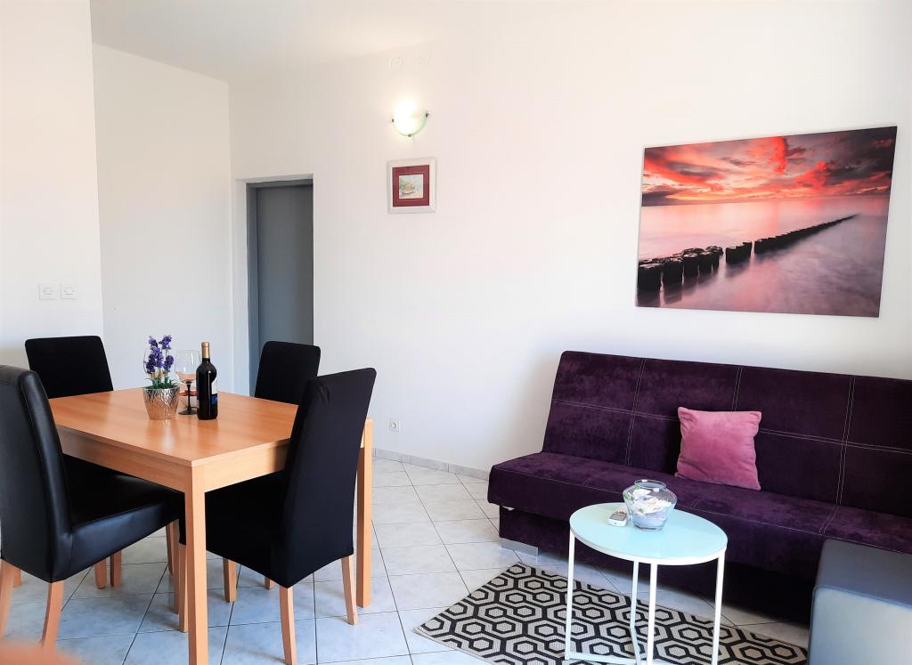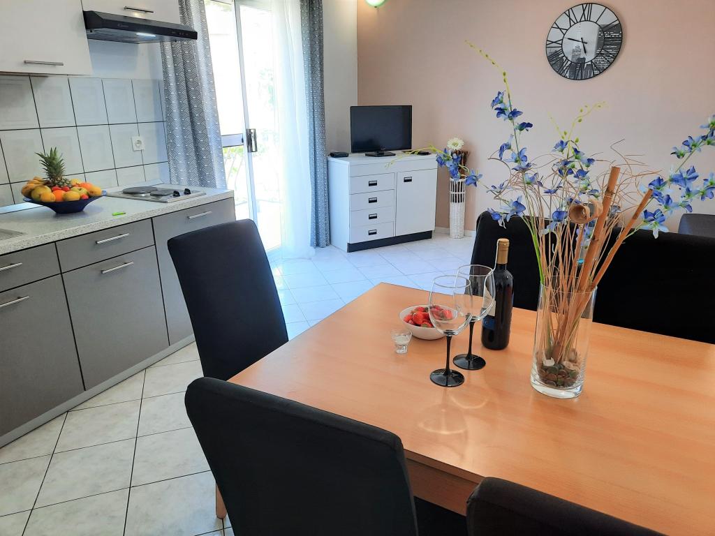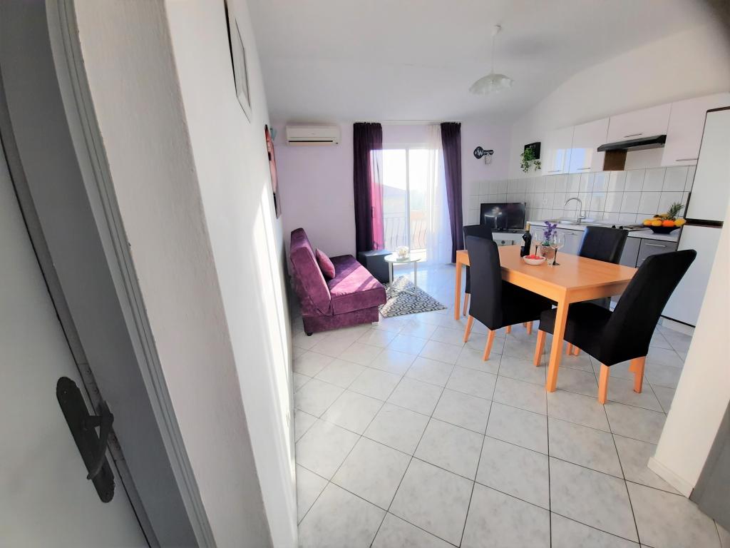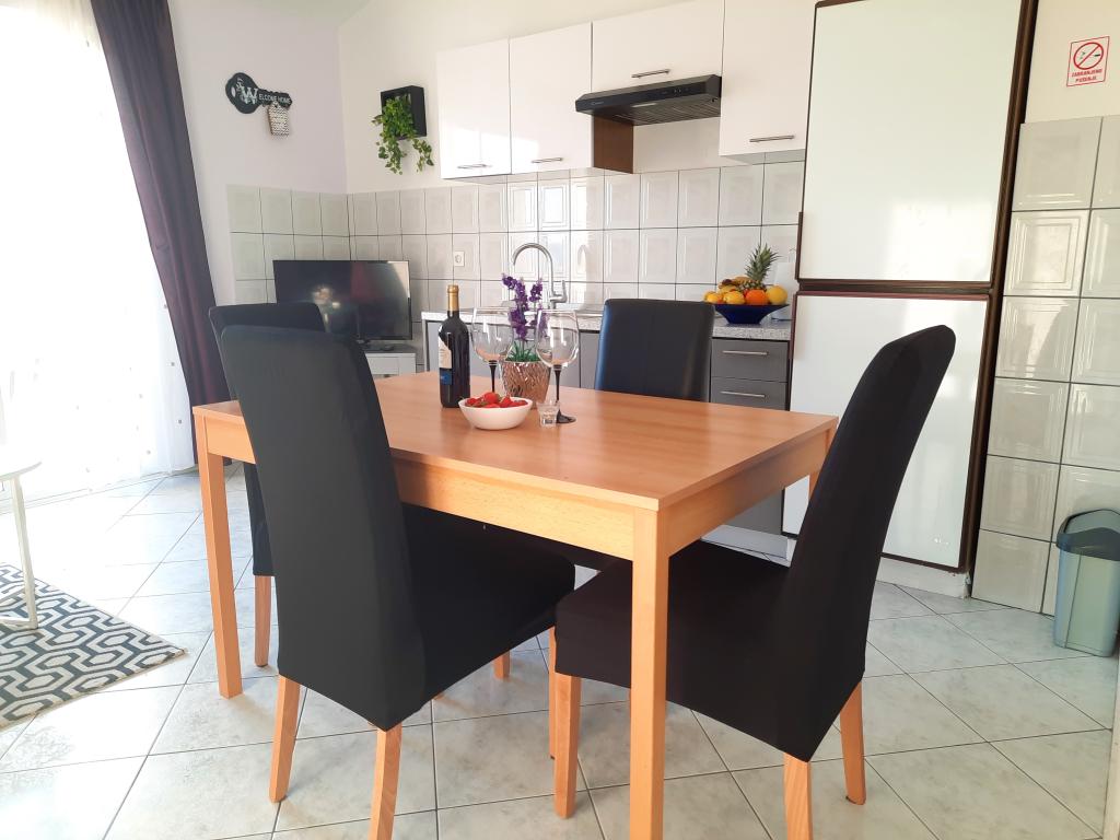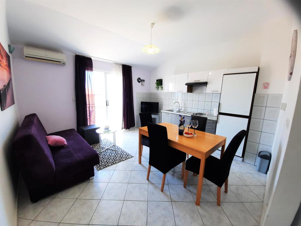 Mieszkanie bardzo czyste i zadbane, ciche. Widok morza. Idealny dla par z dziećmi. Plaża i sklep znajdują się w pobliżu (2 minuty piechotą). Bardzo blisko do Splitu i kilka kilometrów od Omis. Wreszcie, właściciel jest bardzo przyjazny, gościnny i elastyczne. Możesz zarezerwować zamknięte oczy.