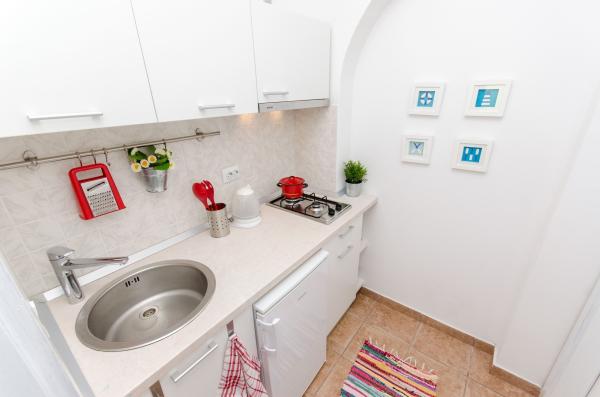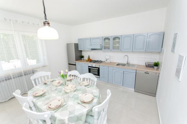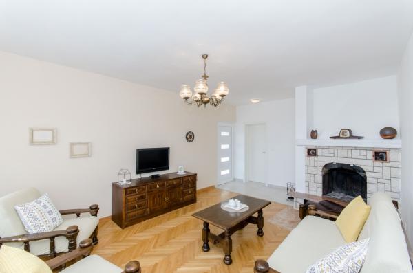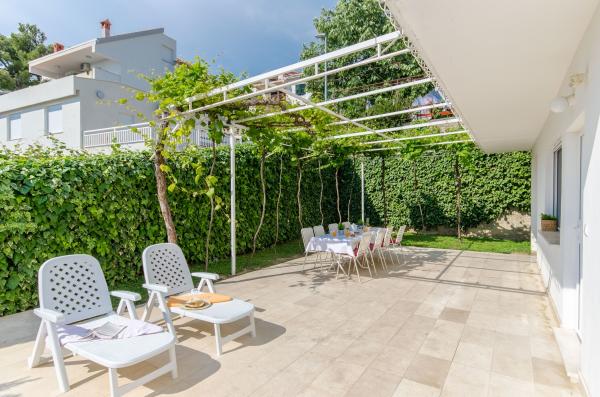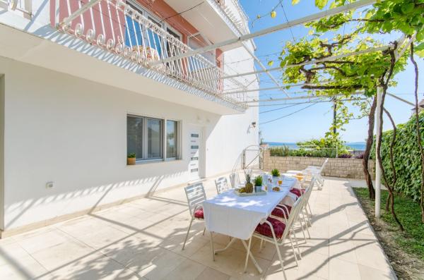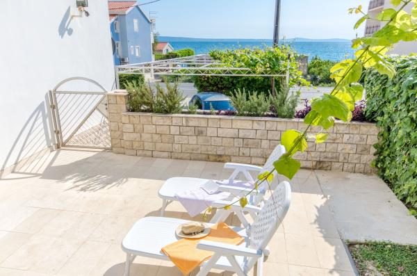 Byliśmy już z rodzina drugi raz i mogę polecić ten obiekt. Jest czysto, spokojnie, do plaży blisko - choć trzeba przejść przez drogę - ale ma to też plusy (choć jest również małym minusem). Większy apartament ma wyjście na duży taras gdzie przesiadywaliśmy całe wieczory. Miejsca na samochody są zadaszone (rośnie winogron na zbudowanych konstrukcjach - ładne i ciekawe rozwiązanie). Na plaży nie ma dużo osób a większość to rodziny z dziećmi i zawsze bez najmniejszego kłopotu można było mieć kawałek plaży dla siebie. Woda czysta, ciepła i pełno ryb , krabów i jest przede wszystkim czysto (ale mimo wszystko trzeba uważać na kolczatki - ale to taki urok). Dzieci były bardzo zachwycone. Właściciele są mili i uczynni, w przypadku kłopotów chętnie pomagają. Z uwagi na dużą rodzinę i znajomych (również z dziećmi i również drugi raz byli) przygotowujemy posiłki we własnym zakresie. Nie było z tym żadnych kłopotów ponieważ kuchnia jest kompleksowo wyposażona a i do sklepów jest bardzo blisko (jeden ok 300 m, drugi ok 700 m) a ceny podobne do naszych. Jeśli ktoś szuka rozrywki zawsze można podjechać do Splitu- tylko ok 10 km a miasto jest fantastyczne, szczególnie nocą. Myślę że jeszcze tam wrócimy. Pozdrawiam Cezary