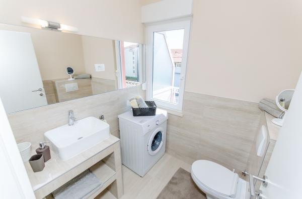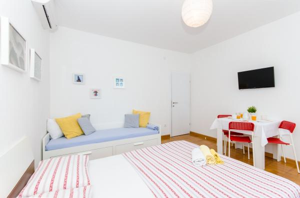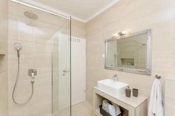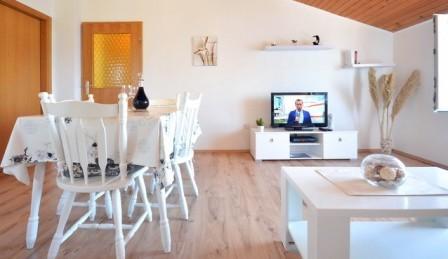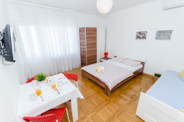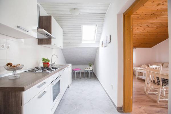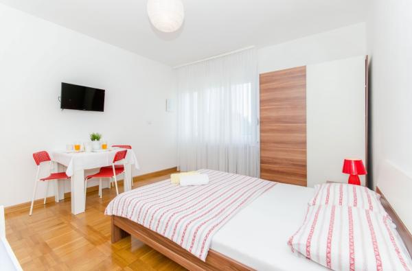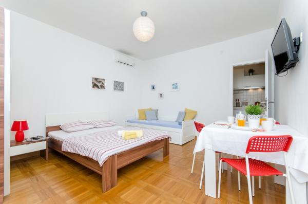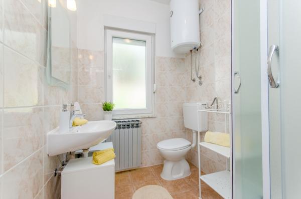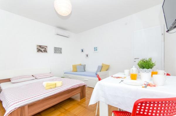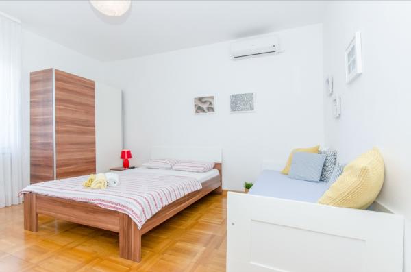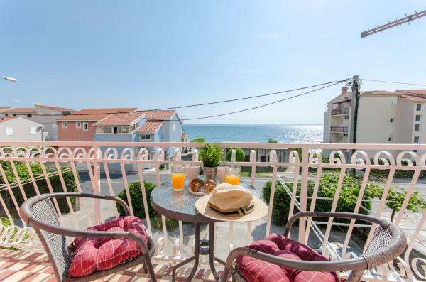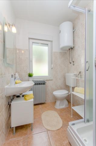 Apartamenty w domu rodzinnym znajdują się w pobliżu morza i kamienistej plaży (odległość od morza i plaży 30 m). Znajdują się w idealnej pozycji, która pozwala ci spędzić spokojne rodzinne wakacje, ale także możliwość odwiedzenia pobliskich miejsc i miast, takich jak Split, Omis, Trogir lub Dubrownik. Apartament A2plus 3 na poddaszu składa się z dużego pokoju (łóżko podwójne) i dodatkowego łóżka, salonu z rozkładaną sofą, łazienki z prysznicem i kuchni wyposażonej we wszystkie sprzęty gospodarstwa domowego. Mieszkanie jest klimatyzowane. Mieszkanie posiada również balkon. Apartament 30 m2 o powierzchni 30 m2 składa się z jednej sypialni z podwójnym łóżkiem 140/200 i dodatkowym łóżkiem 90-200, które można dodatkowo rozbudować. W apartamencie znajduje się oddzielna kuchnia i łazienka z prysznicem oraz balkon. Apartament A7 1 o powierzchni 110 m2. Na pierwszym piętrze znajduje się salon / rozkładana sofa, łazienka, kuchnia i pokój z łóżkiem piętrowym. Na drugim piętrze znajdują się 2 sypialnie z balkonami i toaletą Mieszkanie posiada również duży taras.