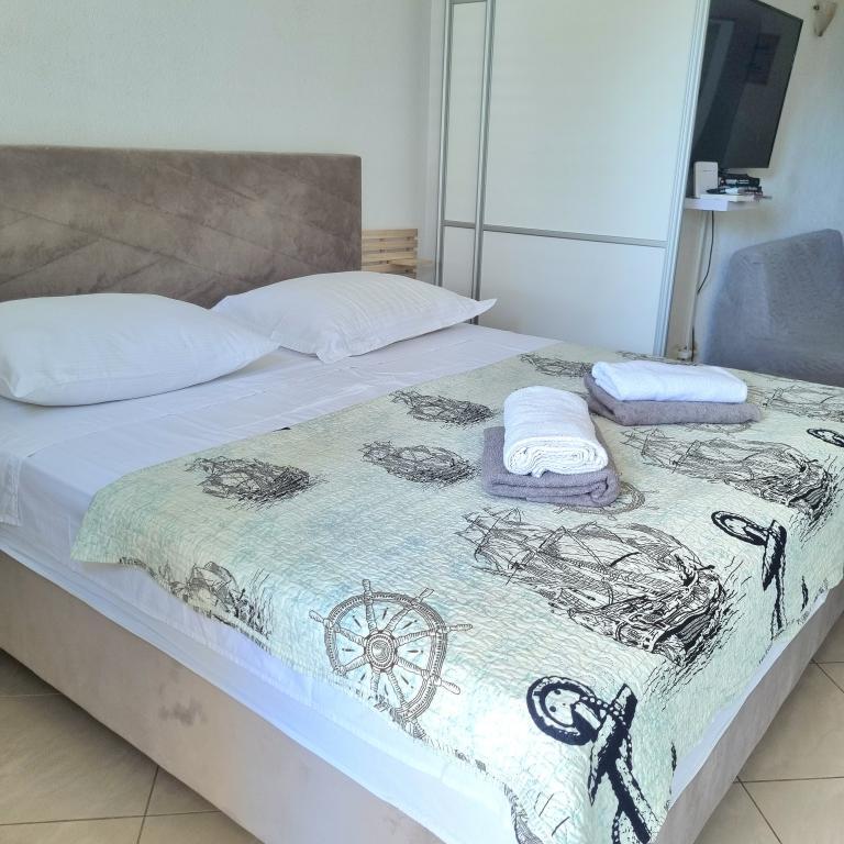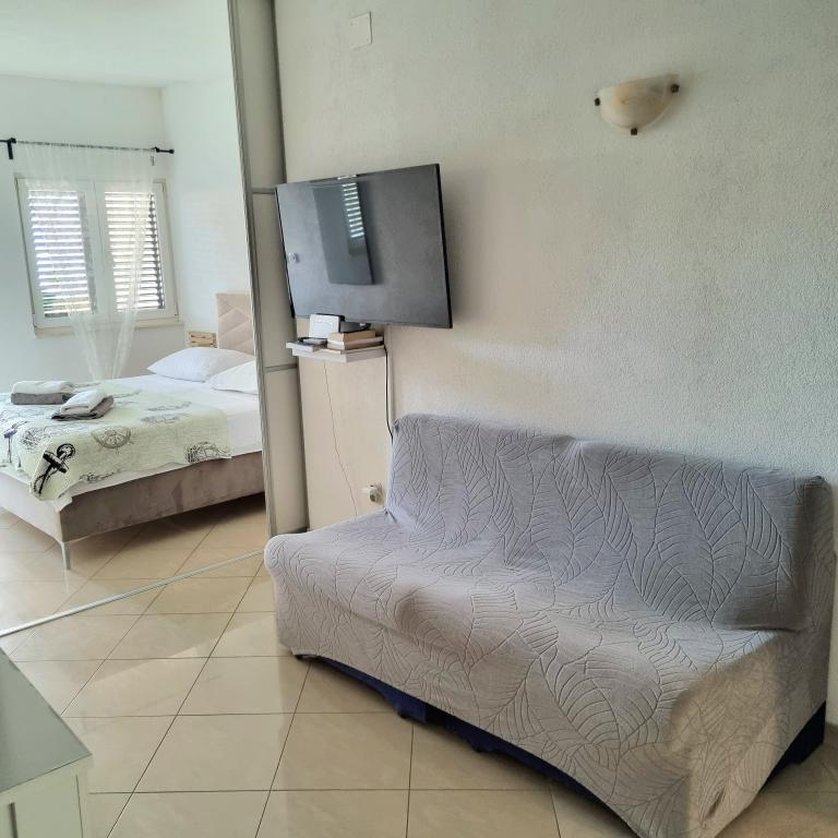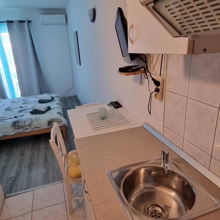 Apartamenty Sara znajdują się w doskonałej lokalizacji, a nasze studio, w którym mieszkaliśmy, było wspaniałe. Masz plażę na minutę, a na plaży masz leżaki i parasol. Tuż obok plaży znajduje się kawiarnia i tylko kilka minut spacerem od restauracji na plaży. Plaża jest czysta, a morze czyste. Również w pobliżu jest dobrze zaopatrzona piekarnia i piekarnia, więc w zasadzie masz wszystko podstawowe. W obiekcie masz również wszystko co niezbędne do ręki, żelazko, włosy, ręczniki i wszystko jest schludne i czyste. Gospodyni Ariela to wspaniała kobieta, która przyjmie Cię i będzie do Twojej dyspozycji na wszystkie Twoje potrzeby. W zasadzie czujesz się jak w domu. Rzeczywiście, wszystkie pochwały i zalecenia dla tego zakwaterowania. Będziesz chciał wrócić ponownie