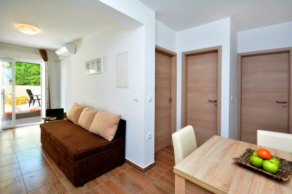 Nowo wybudowany nowoczesny apartament składa się z 2 sypialni, dużego salonu, kuchni i piękny słoneczny taras 50m2 z pełnym zapleczem. Mieszkanie spełni wszystkie Twoje oczekiwania co do przyjemnego wypoczynku.