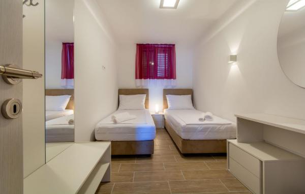 Luksusowo urządzony apartament oferuje wszystko dla beztroskiego wypoczynku. Idealnie usytuowany na plaży. Mieszkanie posiada taras, z którego można podziwiać piękne widoki. Taras z meblami ogrodowymi, który jest doskonałą okazją do spotkania towarzyskie na wolnym powietrzu z różnych potraw, które można zrobić na grill, który jest dostępny dla wszystkich naszych gości. Jest prywatna plaża krzesła i parasole, które mamy dostępne dla wszystkich naszych gości bez dodatkowych opłat. Apartament posiada dwie sypialnie, łazienkę i dodatkową toaletę i kuchnię z jadalnią. Kuchnia jest w pełni wyposażona i zawiera i zmywarkę, piekarnik, lodówkę i czajnik elektryczny. Pościel i ręczniki są dostępne i są wolne zmiany w razie potrzeby. W jednej sypialni znajduje się podwójne łóżko, a druga ma dwa pojedyncze łóżka. W pokoju dziennym znajduje się rozkładana sofę dla dwóch osób. W ramach łazience jest pralka.