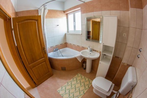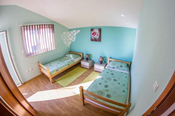 Dom składa się z 3 pięter z 6 pokoi, 4dnevni pokoju (do 2 dostawek), 4 kuchnie, 6 łazienki, taras i jest przeznaczony dla 4 osób 10.