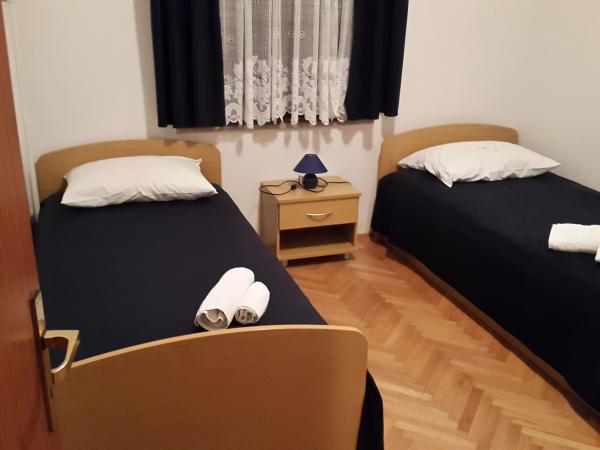Nasz dom położony jest w nowej, spokojnej dzielnicy turystycznej miejscowości Porec, 200m od plaży, restauracji, sklepów i 800 m od centrum miasta. Ma cztery apartamenty z jedną, dwoma i trzema sypialniami, kuchnią, łazienką z prysznicem lub wanną z hydromasażem oraz balkonem. Apartamenty wyposażone są w klimatyzację, TV. Apartamenty wyposażone są w pościel i ręczniki, a także wszystko inne, co należy w gospodarstwie domowym, takich jak: naczynia, ekspres do kawy, mikrofalówka, itp W podwórzu znajduje się parking oraz plac zabaw dla dzieci.