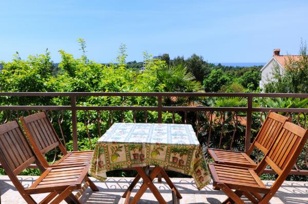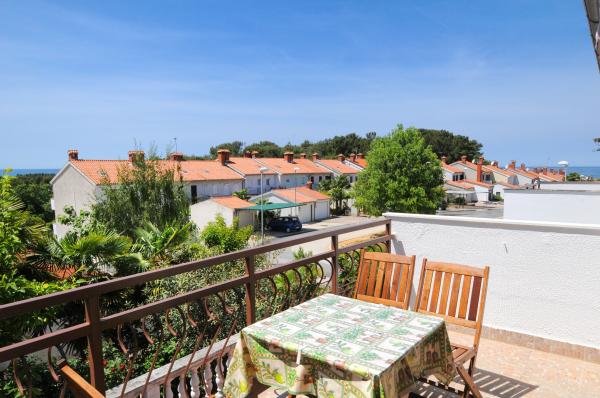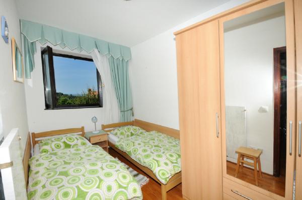 Mieszkanie znajduje się na pierwszym piętrze budynku w otoczeniu zieleni, w cichej elitarnej części miasta Poreč, nad centrum sportowego hotelu Diamant. Komfortowo urządzony apartament składa się z przestronnego salonu, większych i mniejszych sypialni, taras, balkon, zamkniętej kuchni, łazienki z prysznicem i toaletą oraz przedpokoju. Z salonu, taras i mniejsza sypialnia posiada piękny widok na morze. Reszta apartamencie z widokiem własnego pięknie zagospodarowany ogród z drzewami owocowymi i kwiatami w ogrodzie jest własne ruchome ogrodzenie chroniony parking dla samochodu. To trwa tylko dziesięć minut spacerem przez cieniu sosen, aby dostać się na plażach. Istnieje również centrum sportów wodnych (spadochron, banan, rur, itp). W odległości zaledwie 2 km od apartamentów niedawno otwarty duży park wodny Aquacolors Porec.