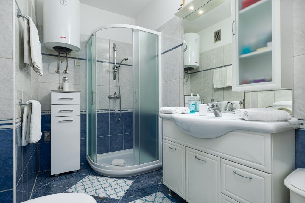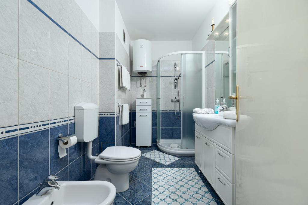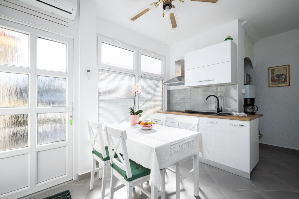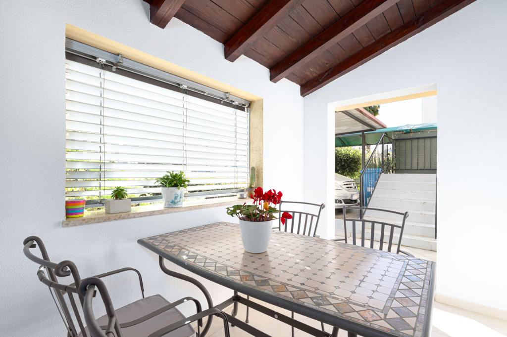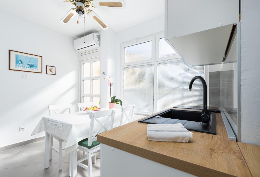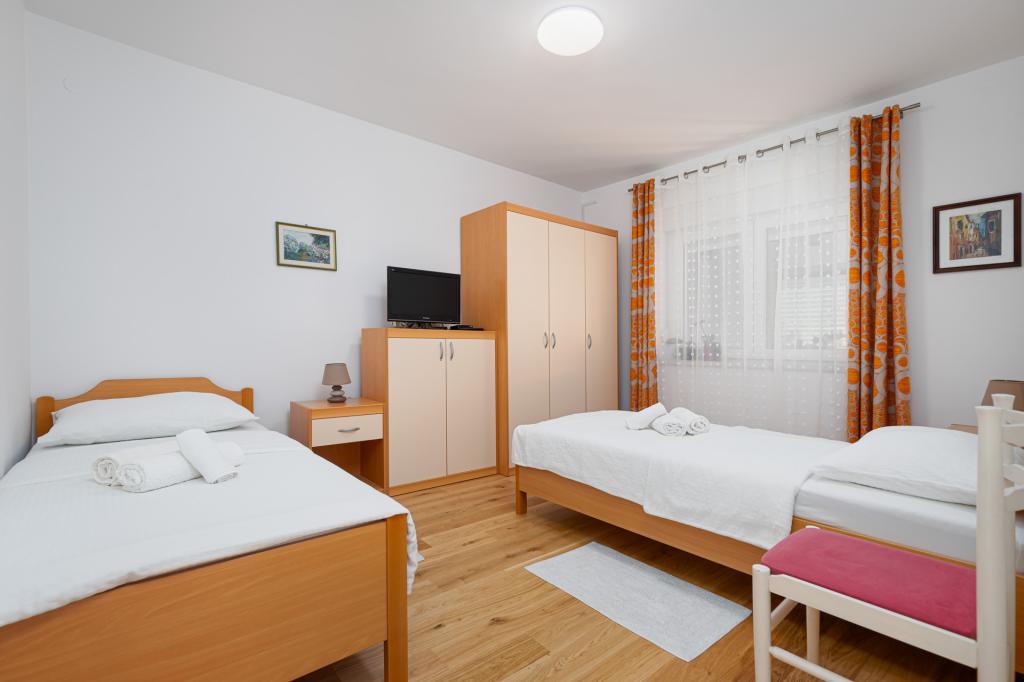 Apartament jest gustownie urządzony i pomieści maksymalnie cztery osoby. Składa się z pokoju dziennego, w pełni wyposażonej kuchni, stołu jadalnego, jednej sypialni dwuosobowej z podwójnym łóżkiem, jednej sypialni z dwoma pojedynczymi łóżkami i telewizorem z płaskim ekranem oraz łazienki. Przed apartamentem znajduje się kącik wypoczynkowy, który zapewnia bardzo przyjemną atmosferę. W cenę wynajmu apartamentu wliczone jest korzystanie z: pościeli, ręczników, Wi-Fi i klimatyzacji.