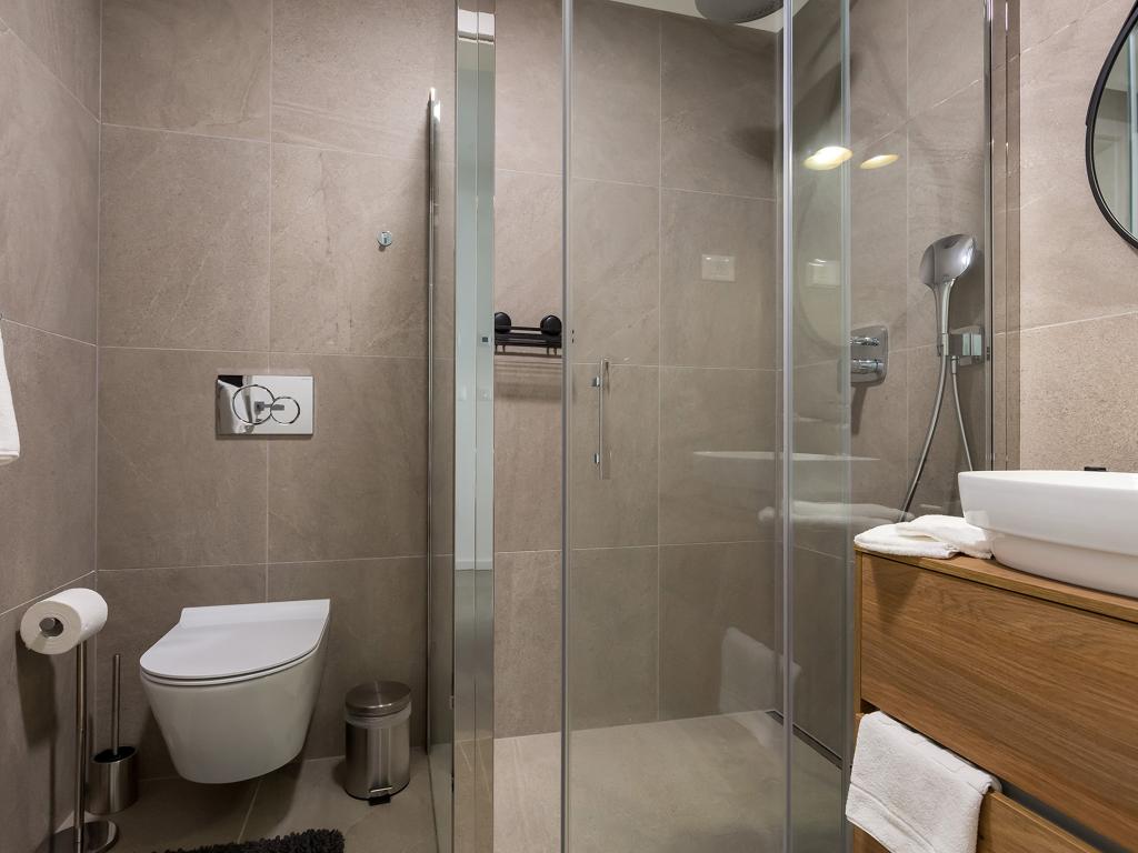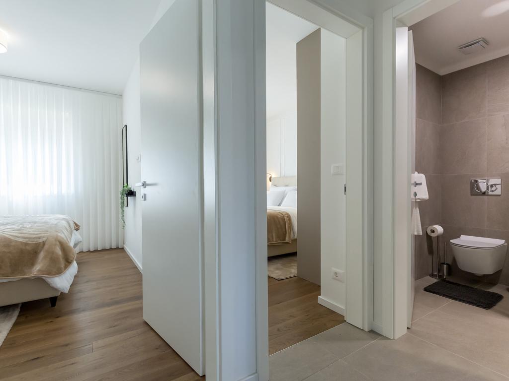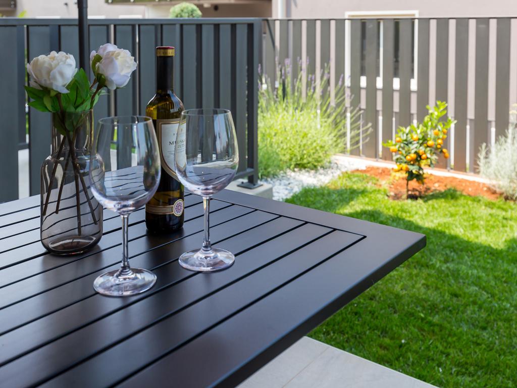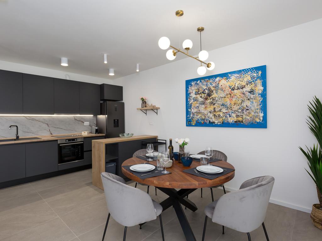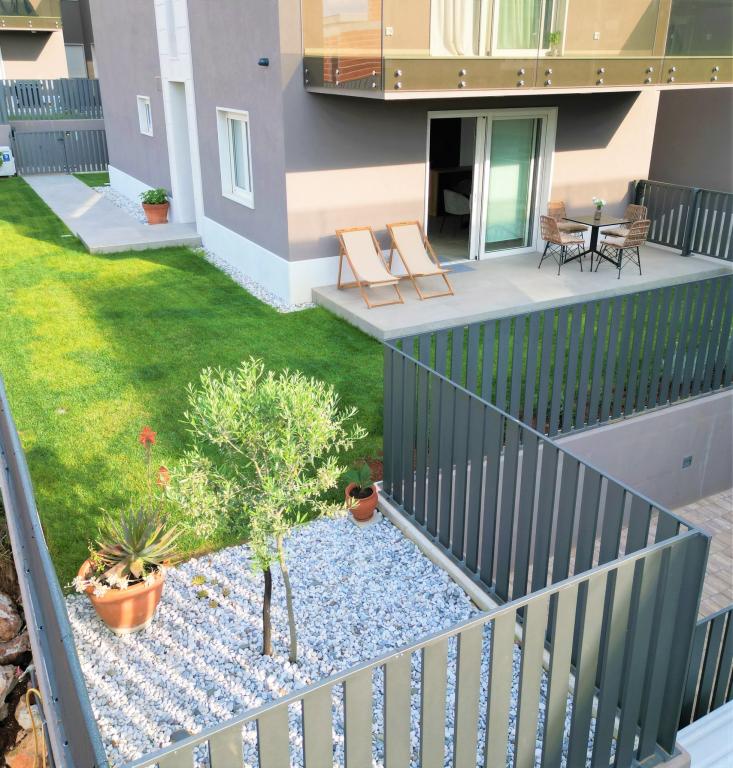 W nowo wybudowanej willi miejskiej na parterze budynku znajduje się apartament Lemon3 z przyległym zagospodarowanym ogrodem o powierzchni ok. 150 m2. Lokalizacja jest osłonięta od ruchu ulicznego, dzięki czemu zapewni wszystkim gościom ciszę i spokój w godzinach wieczornych. Meble są całkowicie nowe, w większości od chorwackich producentów. Mieszkanie ma 65 m2 i składa się z dwóch sypialni, dwóch łazienek z prysznicem, salonu i kuchni. Na podwórku znajduje się taras do zabawy, opalania lub spędzania czasu na świeżym powietrzu. Zrelaksuj się w tym wygodnym i pięknie urządzonym obiekcie.