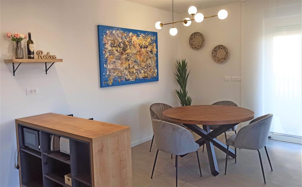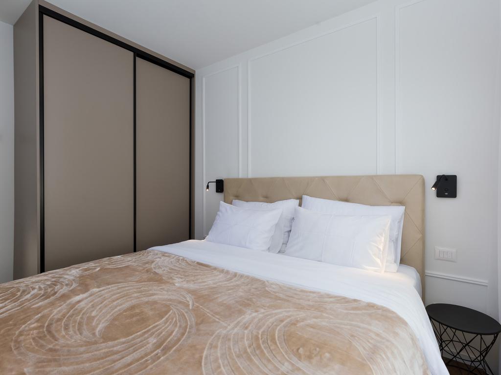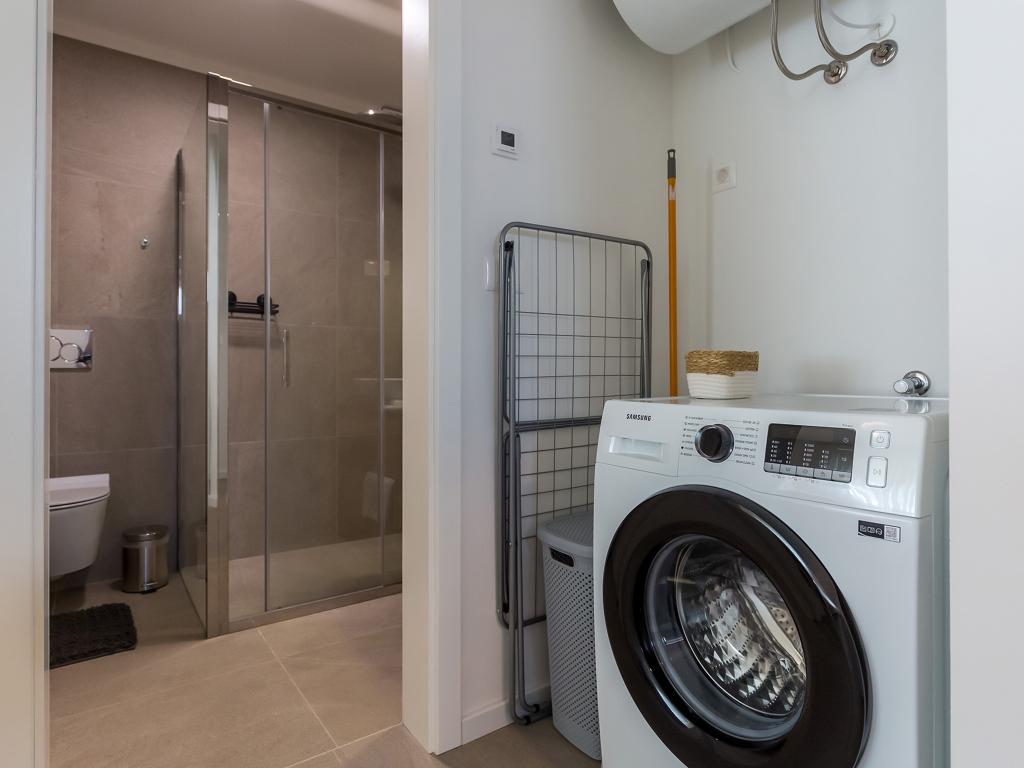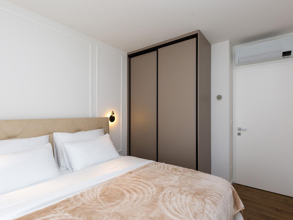 Apartament posiada dwie sypialnie z dużym podwójnym łóżkiem (180x200), dwie łazienki z prysznicem, salon i kuchnię. Posiada ogrzewanie podłogowe i klimatyzację w każdym pokoju. W mieszkaniu jest pralka, a kuchnia wyposażona jest w lodówkę z suszarką do włosów, kuchenkę mikrofalową, toster, ekspres do kawy, czajnik, piekarnik, okap. Pościel i ręczniki zmieniane są raz w tygodniu. Z salonu jest wyjście na taras i podwórko, które jest ogrodzone i znajduje się w spokojnej części miasta. Podwórko jest nawadniane w godzinach nocnych i utrzymywane przez właściciela. Certyfikat energetyczny: A+