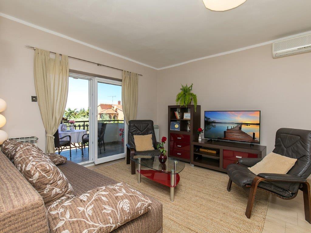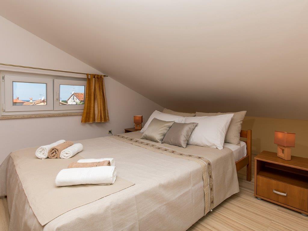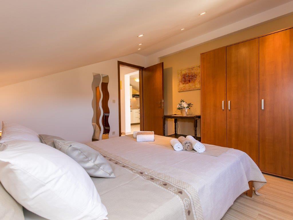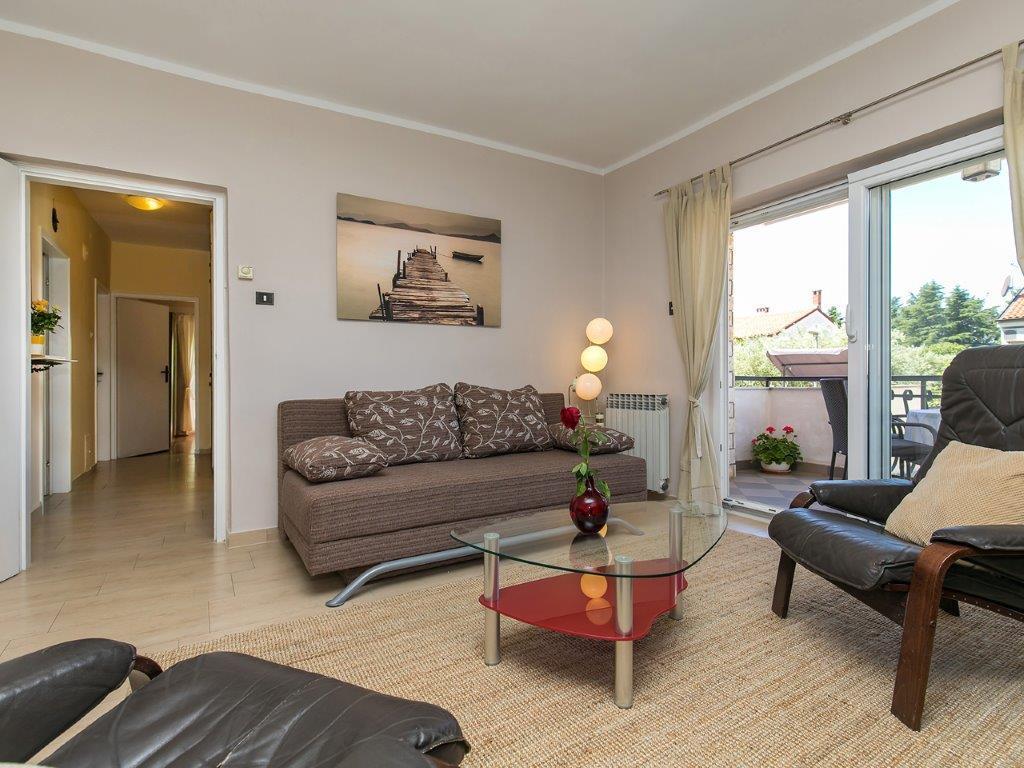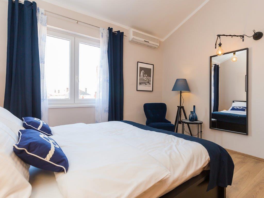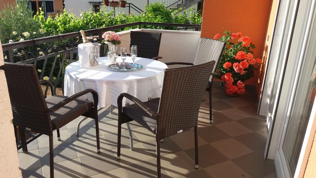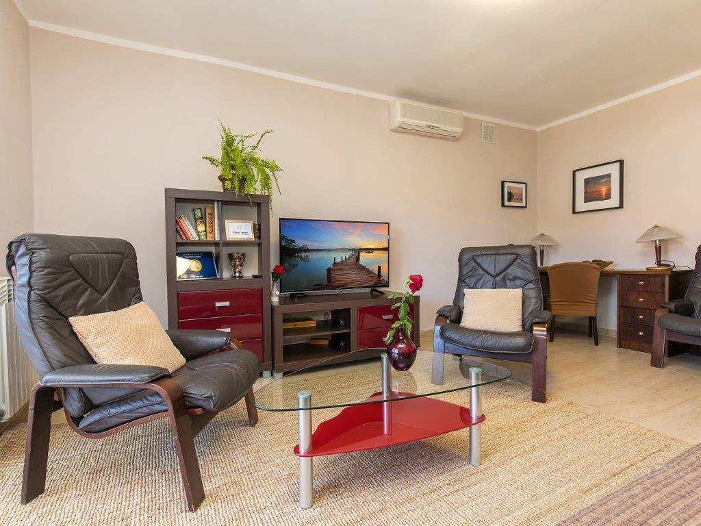 Znajdujemy się w spokojnej okolicy w bezpośrednim sąsiedztwie miasta. Apartament posiada 3 sypialnie z podwójnymi łóżkami, kuchnię, jadalnię, przedpokój oraz 3 łazienki z prysznicem, toaletą i bidetem. Mieszkanie ma wszystko, czego potrzebujesz, aby Twoje wakacje były prawdziwymi wakacjami. Dostępna jest cała pościel, jak również kompletne naczynia do jedzenia i picia, lodówka, ekspres do kawy, kuchenka elektryczna, kuchenka mikrofalowa, telewizor z odbiorem satelitarnym, a także bezpłatny dostęp do Internetu z nieograniczonym dostępem. Przed apartamentem znajduje się duży taras ze stołem i krzesłami oraz leżakami. Za apartamentem jest prawdziwy raj, w cieniu masz duży stół i możesz skorzystać z grilla, a dzieci mogą bawić się swobodnie na zielonej trawie. Przed domem znajduje się prywatny bezpłatny parking. W pobliżu, 50 m od apartamentu, masz duży supermarket, restauracje, przychodnie, a do centrum i pierwszej plaży masz 400 m. Oczywiście nie potrzebujesz samochodu, ponieważ możesz tam dojść w 7-8 minut.