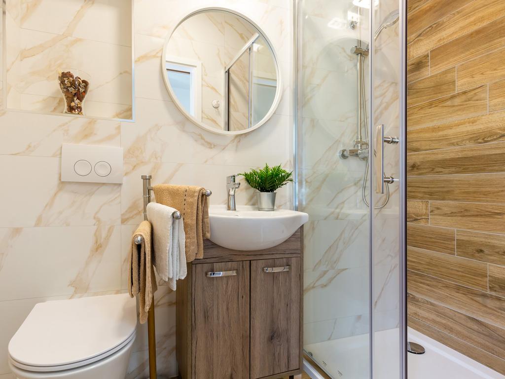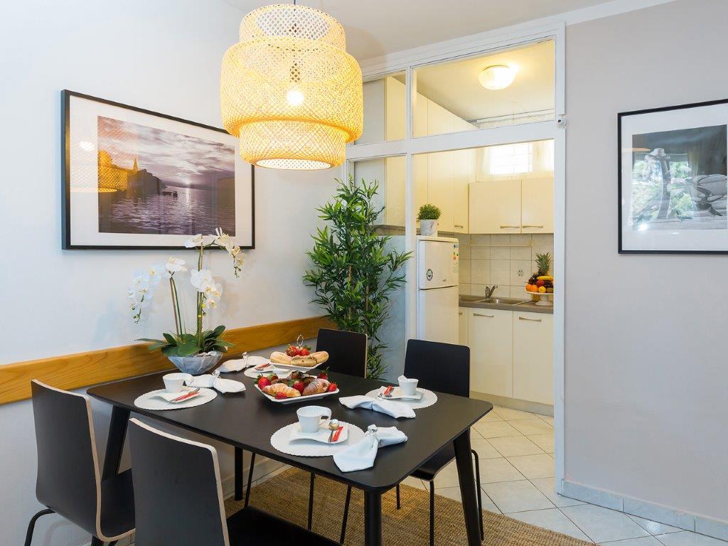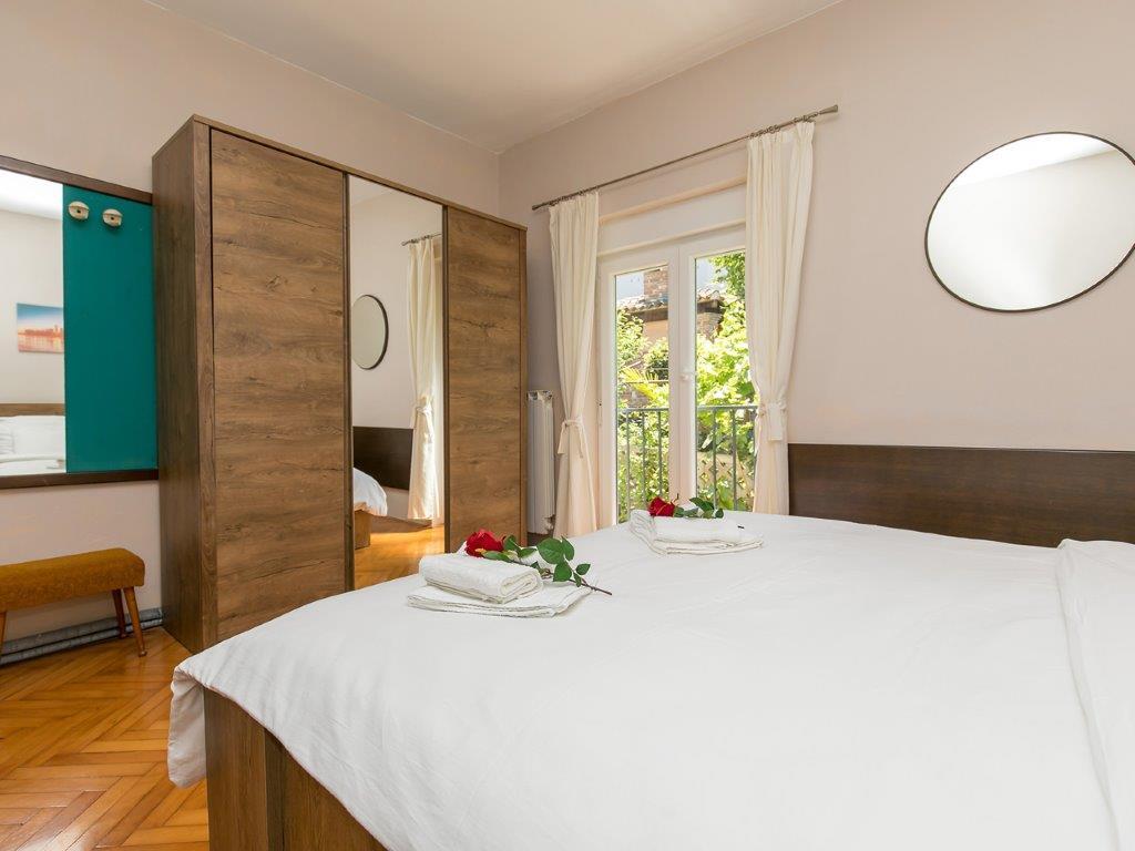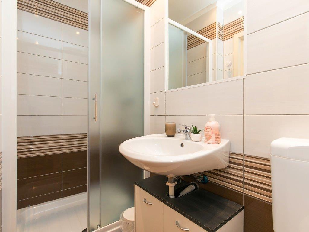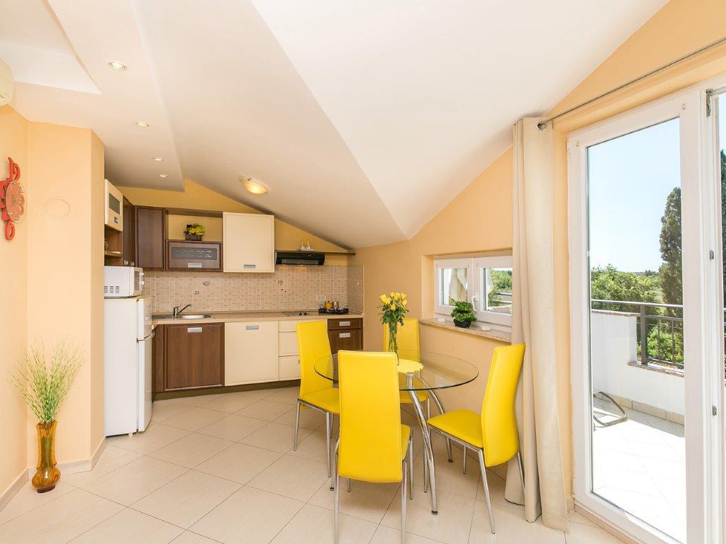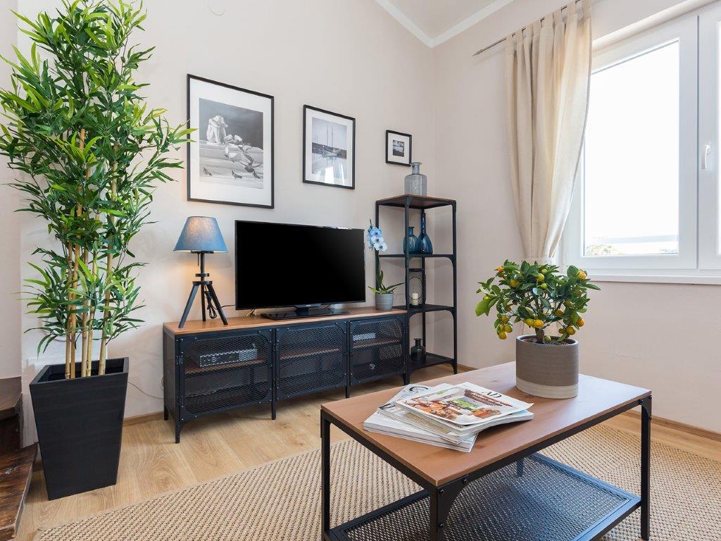 Znajdujemy się w spokojnej okolicy w bezpośrednim sąsiedztwie miasta. Apartament posiada 3 sypialnie z podwójnymi łóżkami, kuchnię, jadalnię, przedpokój oraz 3 łazienki z prysznicem, toaletą i bidetem. Mieszkanie ma wszystko, czego potrzebujesz, aby Twoje wakacje były prawdziwymi wakacjami. Dostępna jest cała pościel, jak również kompletne naczynia do jedzenia i picia, lodówka, ekspres do kawy, kuchenka elektryczna, kuchenka mikrofalowa, telewizor z odbiorem satelitarnym, a także bezpłatny dostęp do Internetu z nieograniczonym dostępem. Przed apartamentem znajduje się duży taras ze stołem i krzesłami oraz leżakami. Za apartamentem jest prawdziwy raj, w cieniu masz duży stół i możesz skorzystać z grilla, a dzieci mogą bawić się swobodnie na zielonej trawie. Przed domem znajduje się prywatny bezpłatny parking. W pobliżu, 50 m od apartamentu, masz duży supermarket, restauracje, przychodnie, a do centrum i pierwszej plaży masz 400 m. Oczywiście nie potrzebujesz samochodu, ponieważ możesz tam dojść w 7-8 minut.