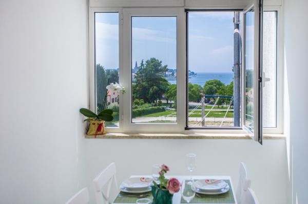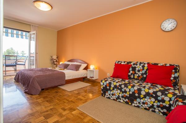 Studio Apartament Vista Poreč znajduje się w spokojnej okolicy, zaledwie 200 m od morza i 500 m od centrum miasta. Idealny dla rodzin z małymi dziećmi. Piękna żwirowa plaża z cieniami sosen znajduje się zaledwie 300 m od apartamentu, sklep 400 m, najbliższa restauracja / pizzeria znajduje się w odległości 100 m. W pobliżu znajduje się wielofunkcyjny boisko do piłki nożnej, koszykówki i tenisa stołowego, huśtawka dla dzieci i tobogany, minigolf, korty tenisowe i nieatrakcyjne ćwiczenia na świeżym powietrzu wzdłuż morza, wypożyczalnia łodzi, narty wodne, jazda na rowerze. Apartament typu studio znajduje się na trzecim piętrze, o powierzchni 45 m2 i składa się z klimatyzowanej części dziennej / sypialnej z wygodnym łóżkiem podwójnym (1, 6 x 2, 00), rozkładanej sofy (1, 4 x 2, 00), w pełni wyposażonej kuchni ze stołem do jedzenia i łazienką z prysznicem. Oprócz budynku dostępny jest bezpłatny parking publiczny. Mieszkanie ma zadaszony taras z widokiem na morze i Poreč, gdzie można cieszyć się poranną kawą lub romantycznymi wieczorami.