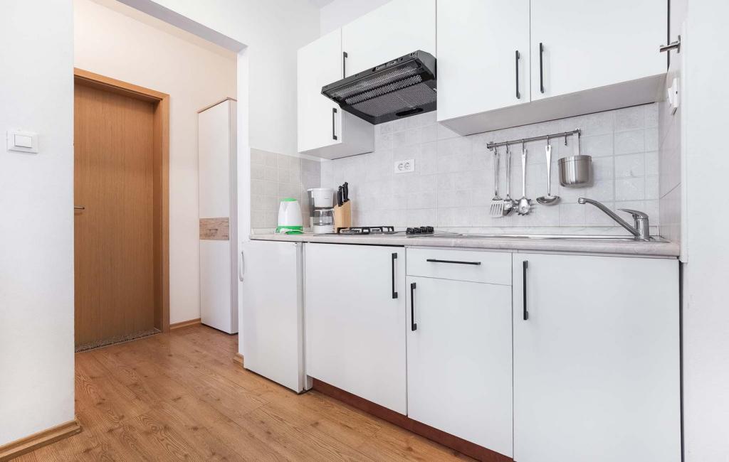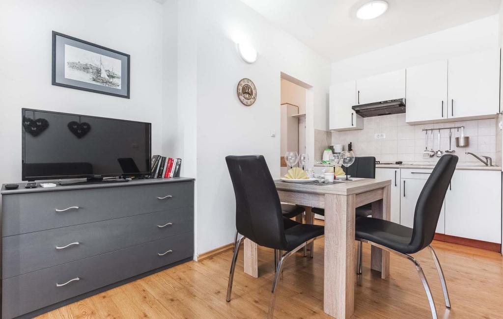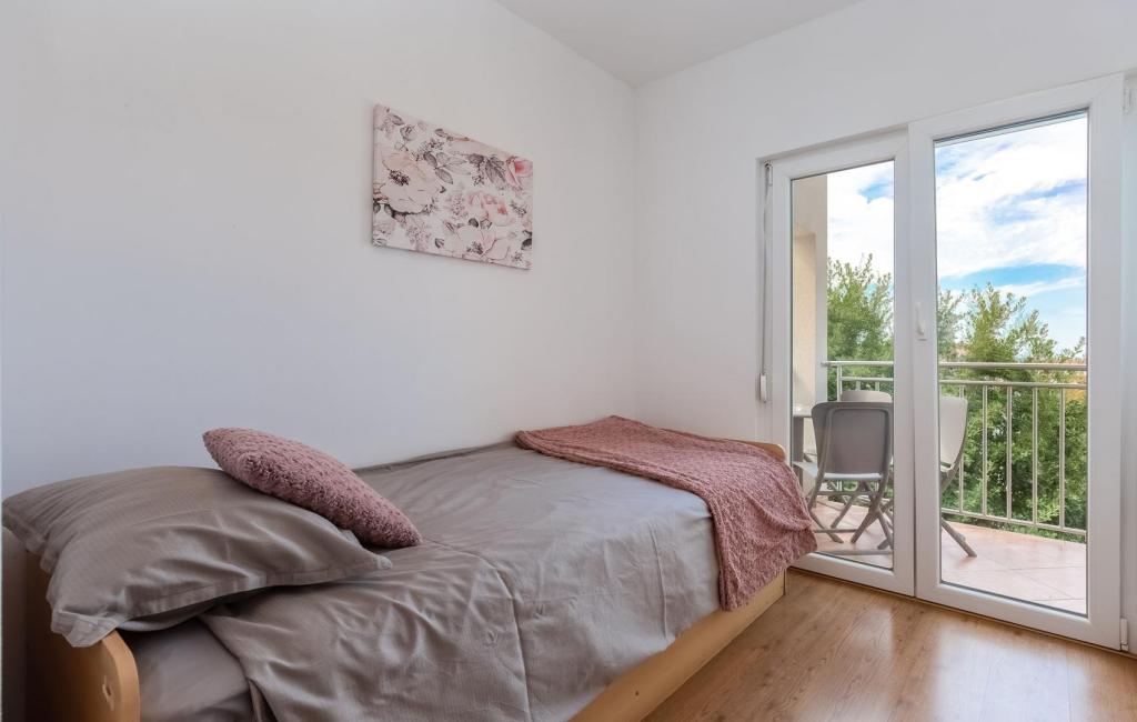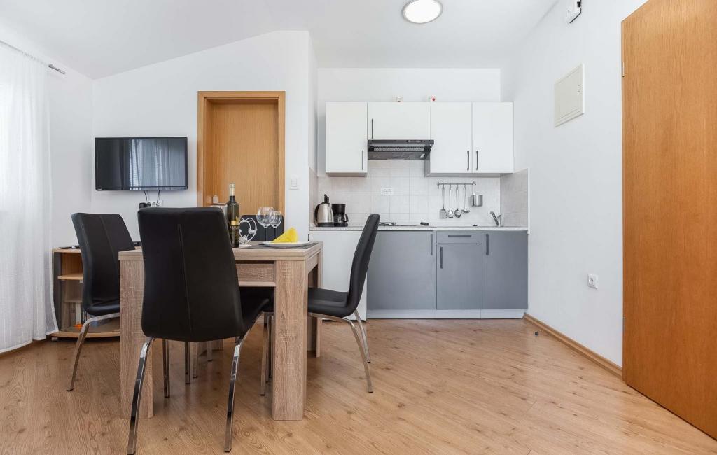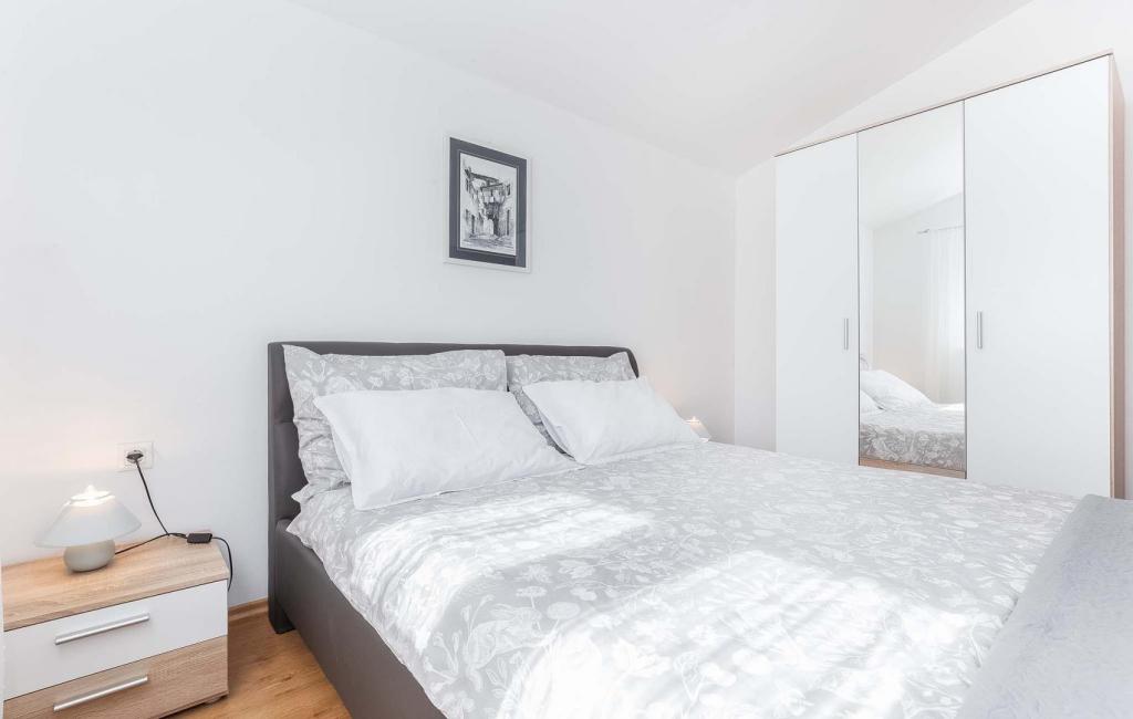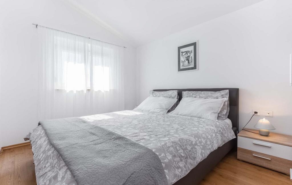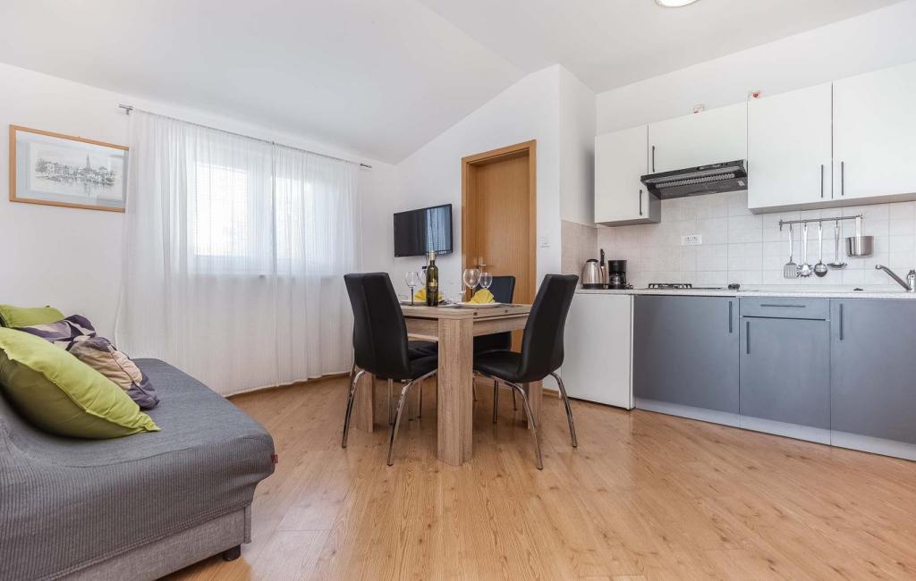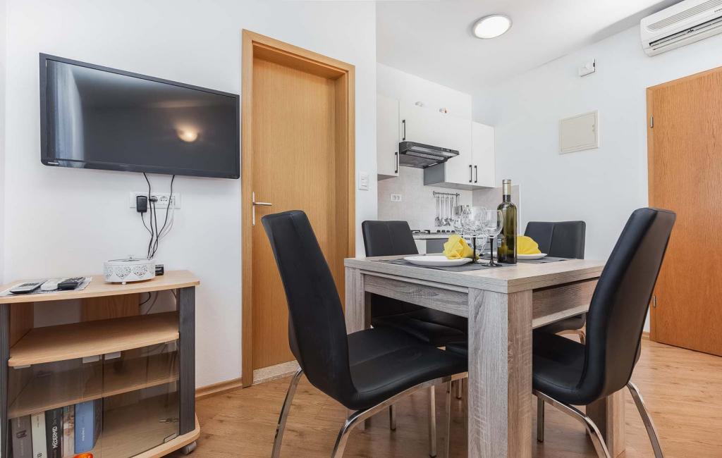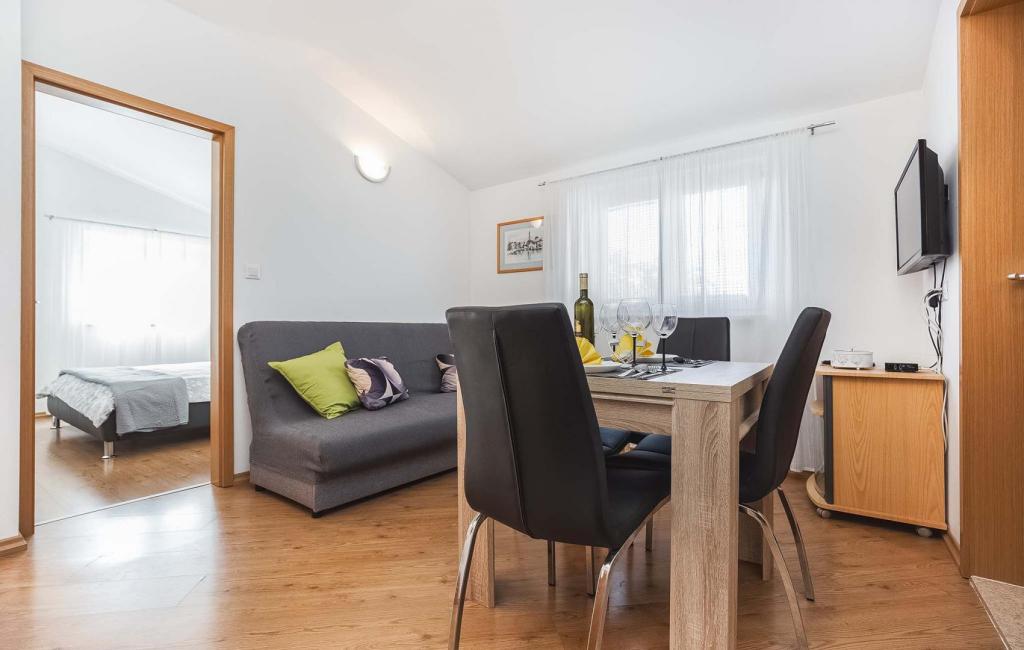 Apartament Nikolina 1 B4 znajduje się w budynku mieszkalnym w centrum miasta, zaledwie 200 metrów od plaż. Apartament może pomieścić 4-5 osób. Posiada jedną sypialnię z podwójnym łóżkiem, pokój dzienny wyposażony w podwójną rozkładaną sofę, która służy jako łóżko dla 2 osób w pokoju dziennym oraz innej kanapy, która służy jako leżał piątej osoby. Kuchnia jest w pełni wyposażona. W salonie znajduje się przestronny balkon. Parking dla gości znajduje się na drodze na zewnątrz budynku.