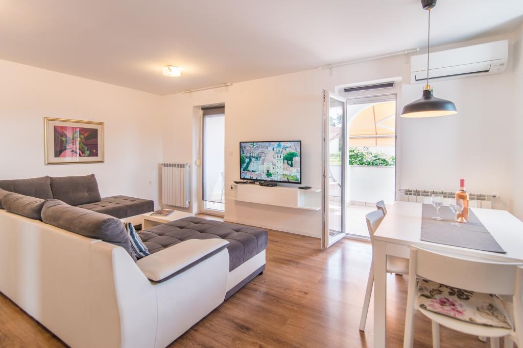 Polecam to mieszkanie ze względu na ich wielkość, lokalizację i dostęp do słońca przez cały czas. Apartament znajduje się na poddaszu, co sprawia, że nie cały czas w cieple. Posiada balkon, na którym można spędzić czas aż do późnych godzin wieczornych. Również biorąc prysznic można wziąć opalania, ponieważ duże okno w dachu jest powyżej kabiny. Pokój jest w pełni wyposażony. Cichej i spokojnej okolicy. Do morza i miasta 5-10 minut spacerem do supermarketów Lidl lub Konzum 2 minuty spacerem. Sąsiedzi miły uprzejmy, Możliwość parkowania w pobliżu domu lub parking wewnątrz. Bardzo przystępne ceny dla takich warunkach. Polecam wakacje przed sezonem turystycznym, który jest równie ciepły i tańsze. Z wielką chęcią wrócę tam następnym razem.