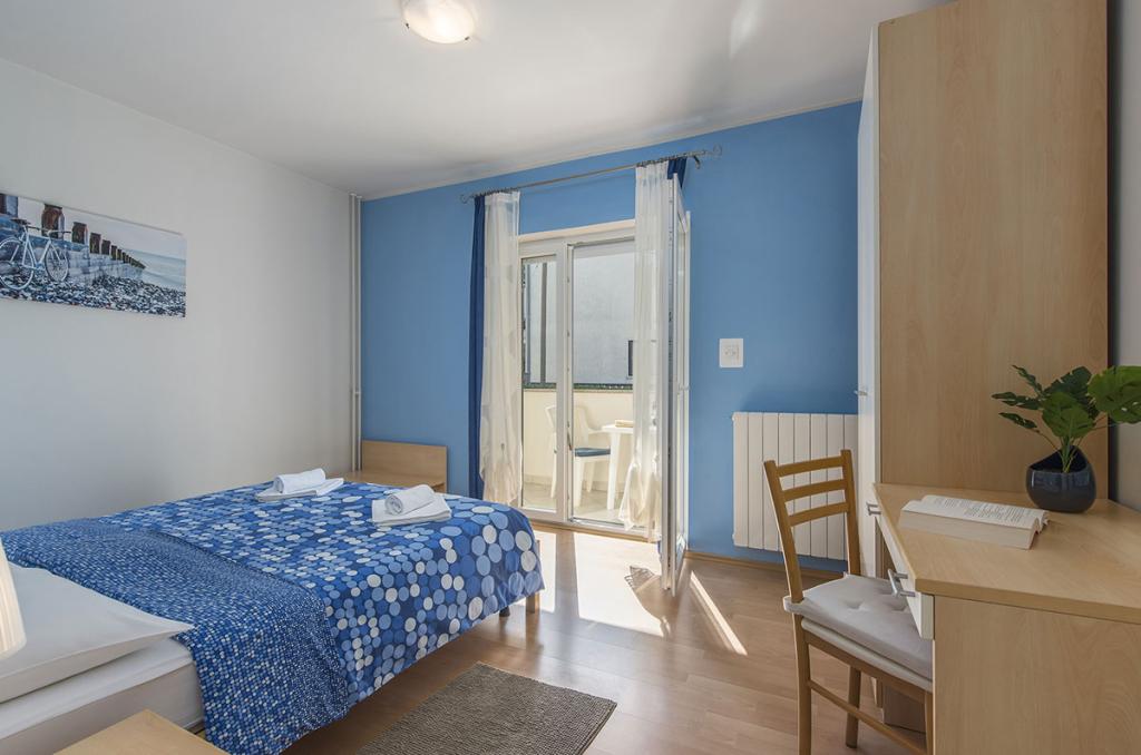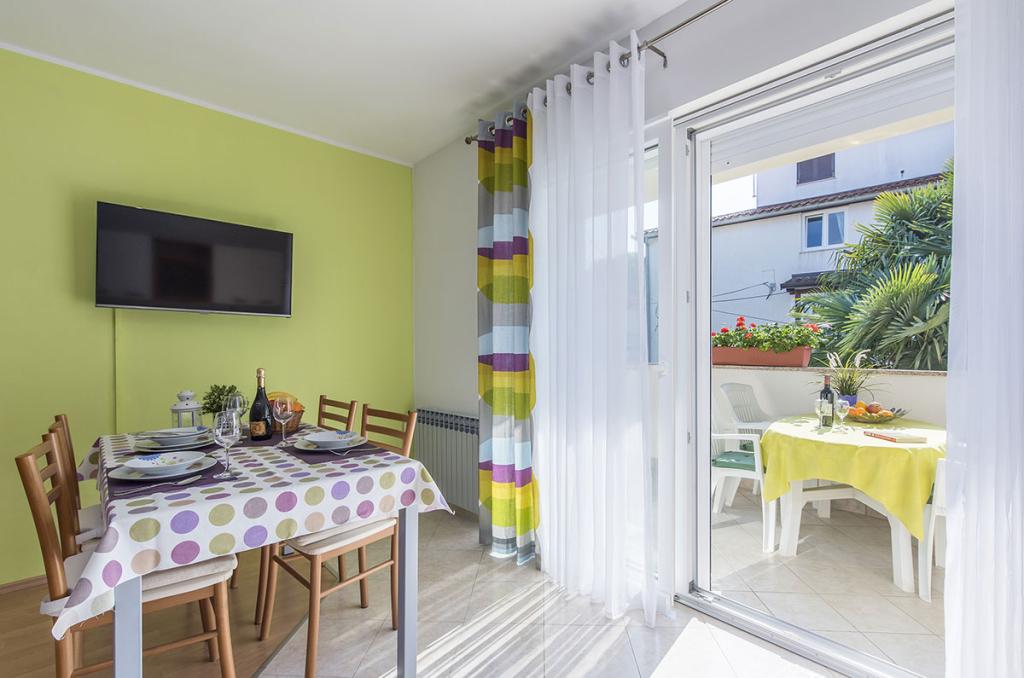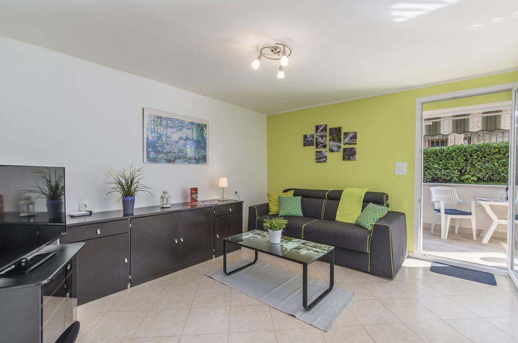Apartamenty znajdują się w spokojnej dzielnicy Poreč, 5 minut spacerem od plaży. W promieniu 50 metrów znajdują się sklepy, kilka piekarni, 5-6 restauracji, korty tenisowe i inne obiekty sportowe. Do starego centrum miasta można dojść w 15 minut promenadą nadmorską lub skorzystać z kursującego przez cały dzień pociągu turystycznego.