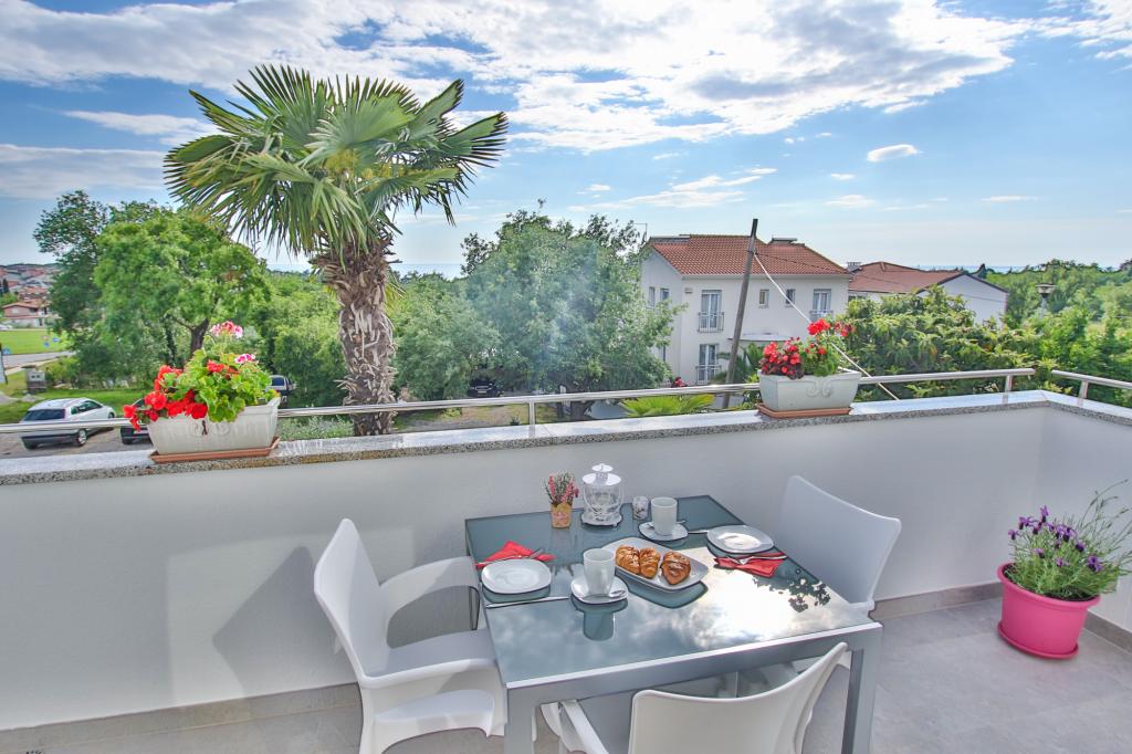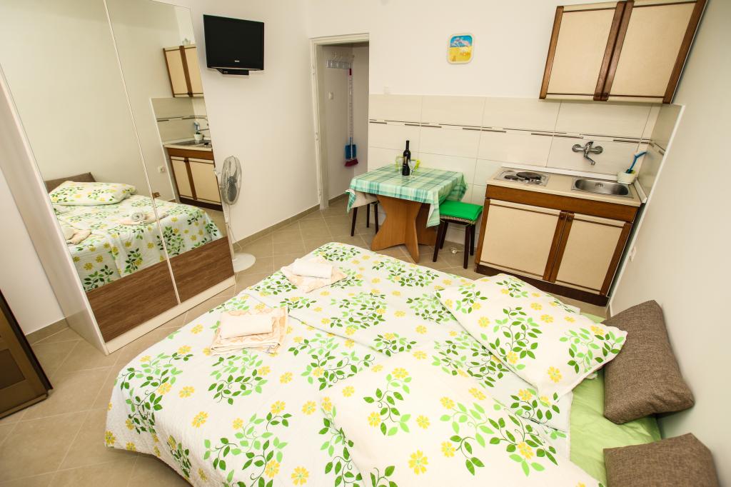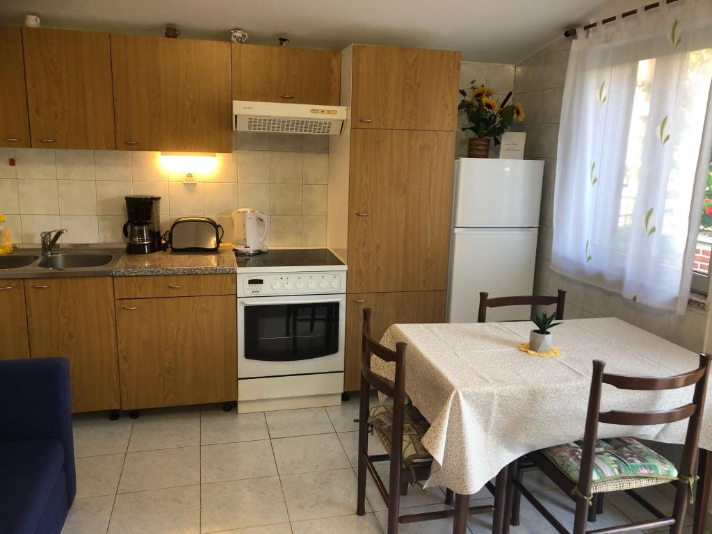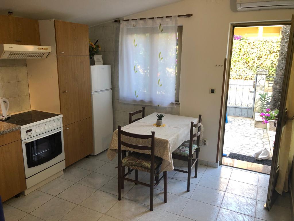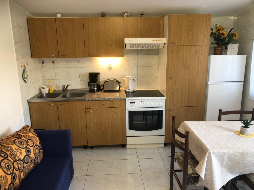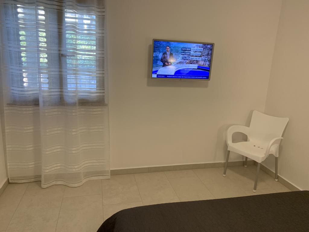 Mieszkanie znajduje się na pierwszym piętrze z pięknym widokiem na morze Już samo wejście do mieszkania zapiera dech w piersiach, ponieważ widok już ucieka na taras i widok Mieszkanie jest nowocześnie wyposażone w sypialnię z podwójnym łóżkiem 180 x 200, telewizję satelitarną, sejf, łazienkę z prysznicem, pralkę, kuchnię z balkonem, pralkę, telewizję satelitarną i piękny widok W apartamencie znajduje się ekspres do kawy, czajnik, suszarka do włosów, żelazko i parking