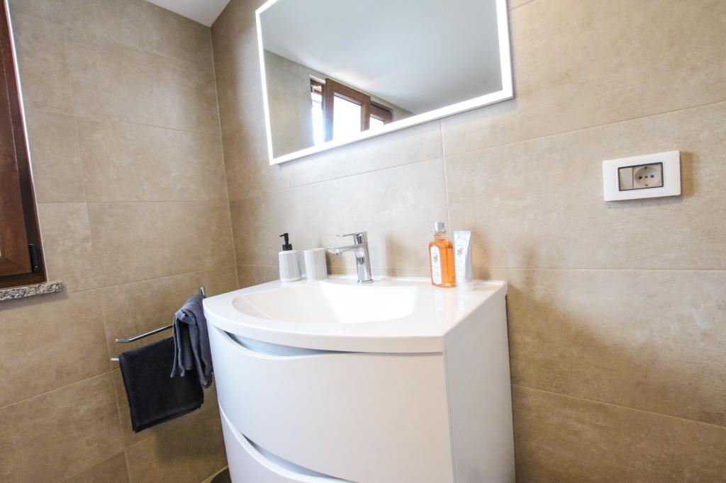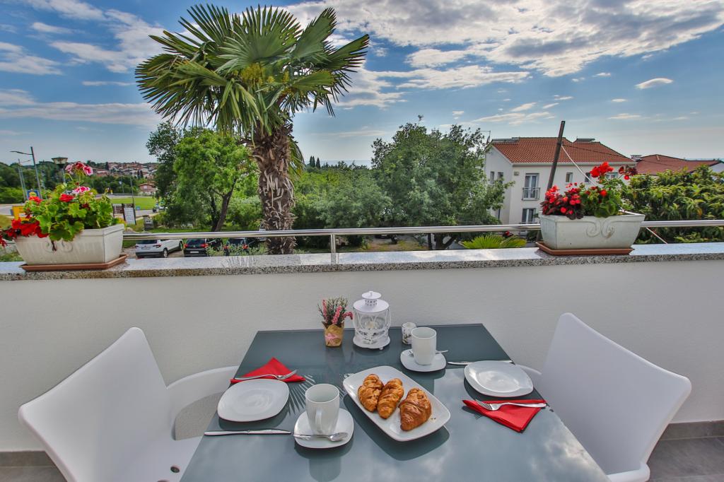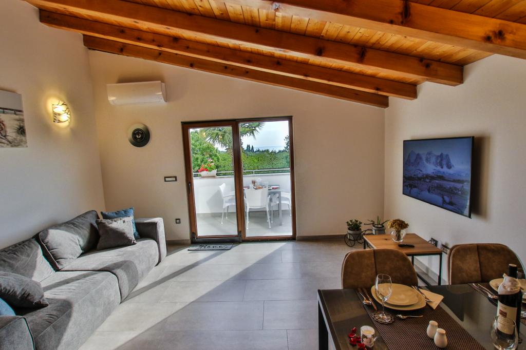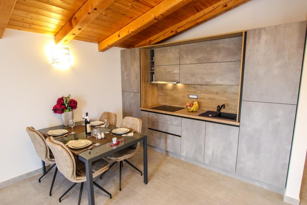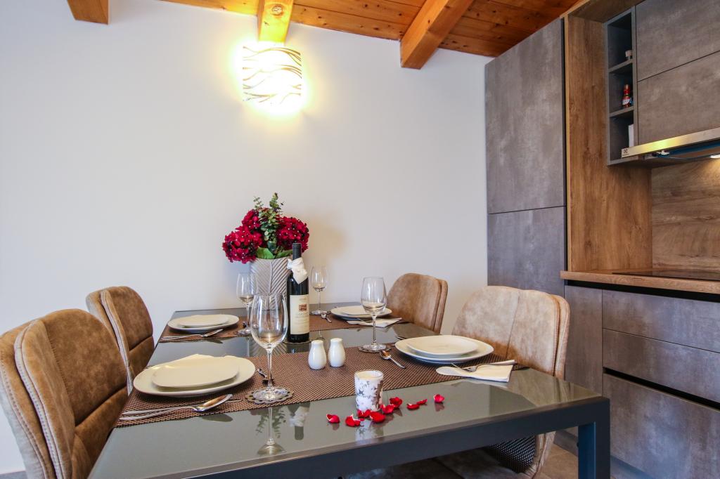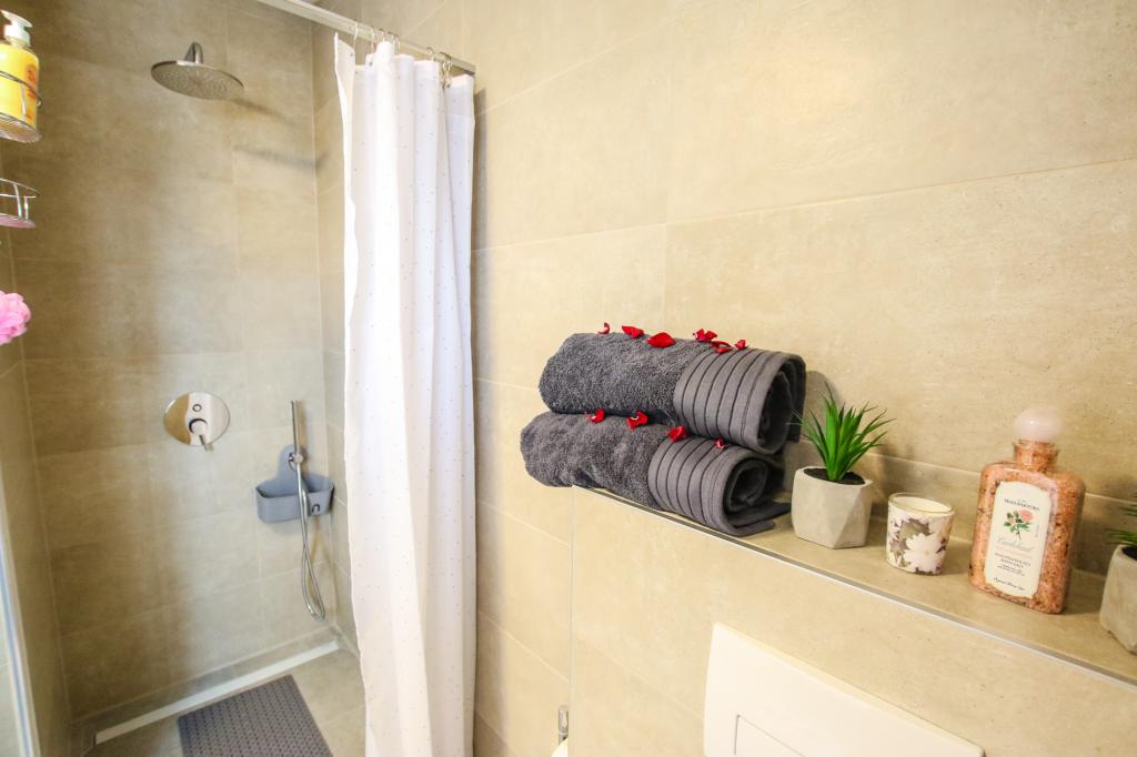 Mieszkanie znajduje się na pierwszym piętrze z pięknym widokiem na morze Już samo wejście do mieszkania zapiera dech w piersiach, ponieważ widok już ucieka na taras i widok Mieszkanie jest nowocześnie wyposażone w sypialnię z podwójnym łóżkiem 180 x 200, telewizję satelitarną, sejf, łazienkę z prysznicem, pralkę, kuchnię z balkonem, pralkę, telewizję satelitarną i piękny widok W apartamencie znajduje się ekspres do kawy, czajnik, suszarka do włosów, żelazko i parking