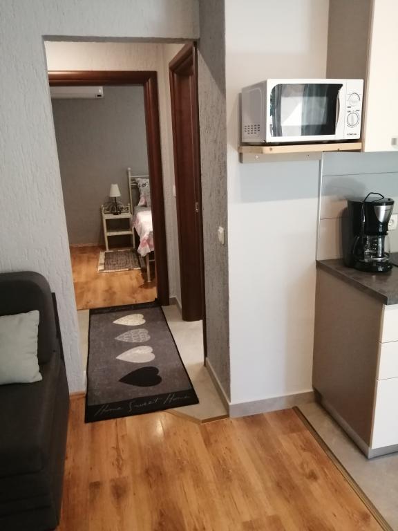 Drodzy goście, napój powitalny, taki jak sok, woda mineralna, owoce, czekoladki czy lody dla dzieci wliczony jest w cenę. W ogrodzie znajduje się kolejny taras z kominkiem z naturalnego kamienia w cieniu pod Kiwi, do grillowania i spotkań towarzyskich. W bezpośrednim sąsiedztwie istnieje możliwość wypożyczenia łodzi i zorganizowanych wycieczek łodzią oraz wypożyczenia samochodów, motorowerów i rowerów. Supermarkety w promieniu 500m. Hale sportowe Žatika i Veli Jože 300-400m od domu. Plac zabaw dla dzieci 100m od domu. Również sklep z domowym serem, winem i olejem 500m